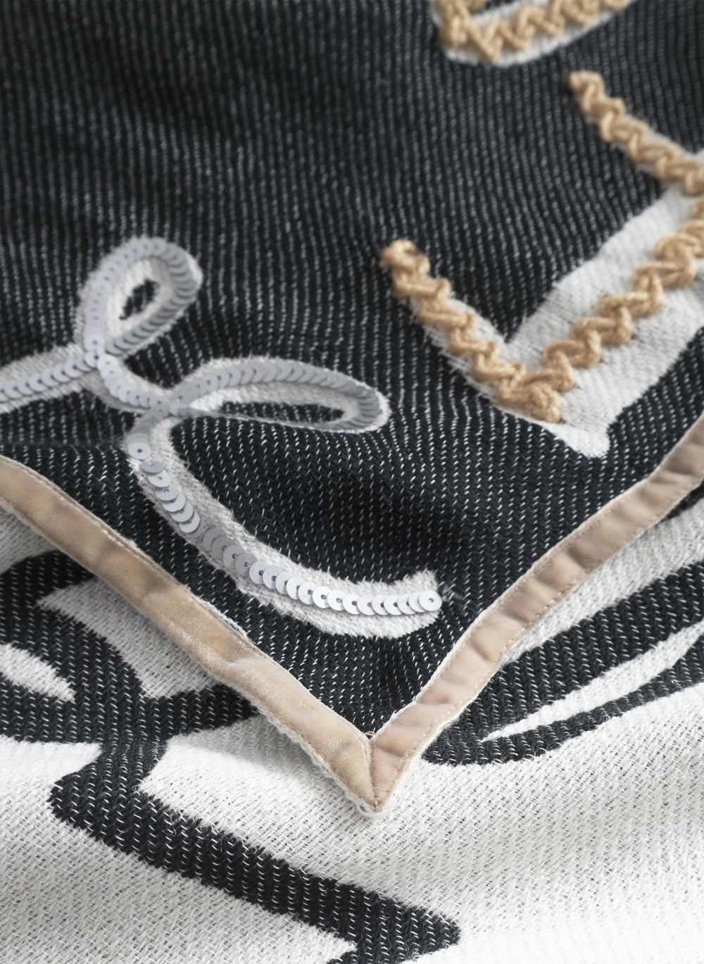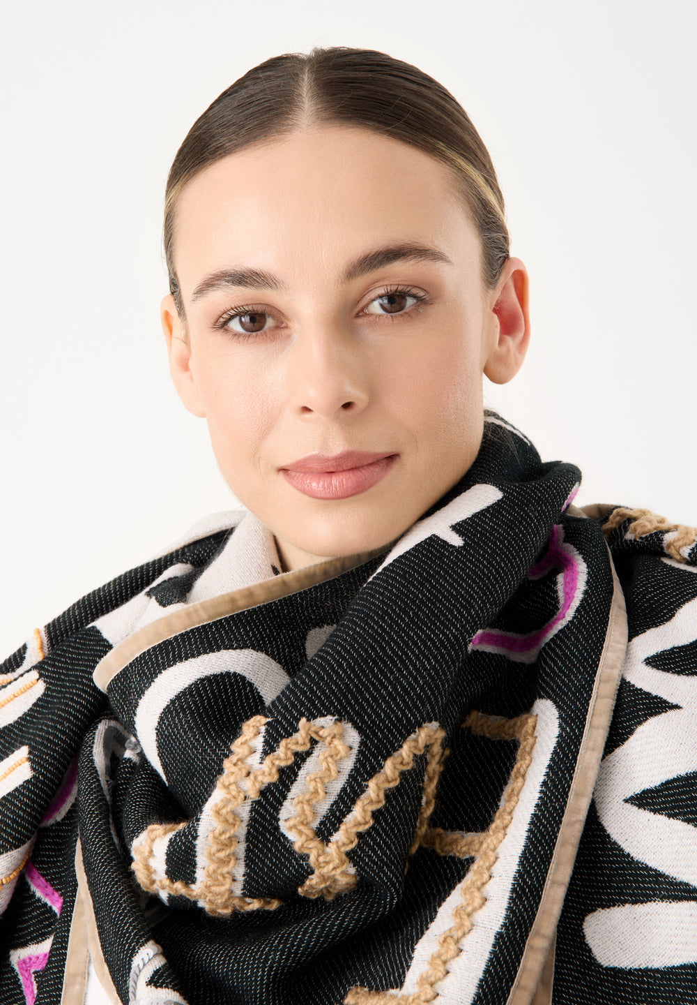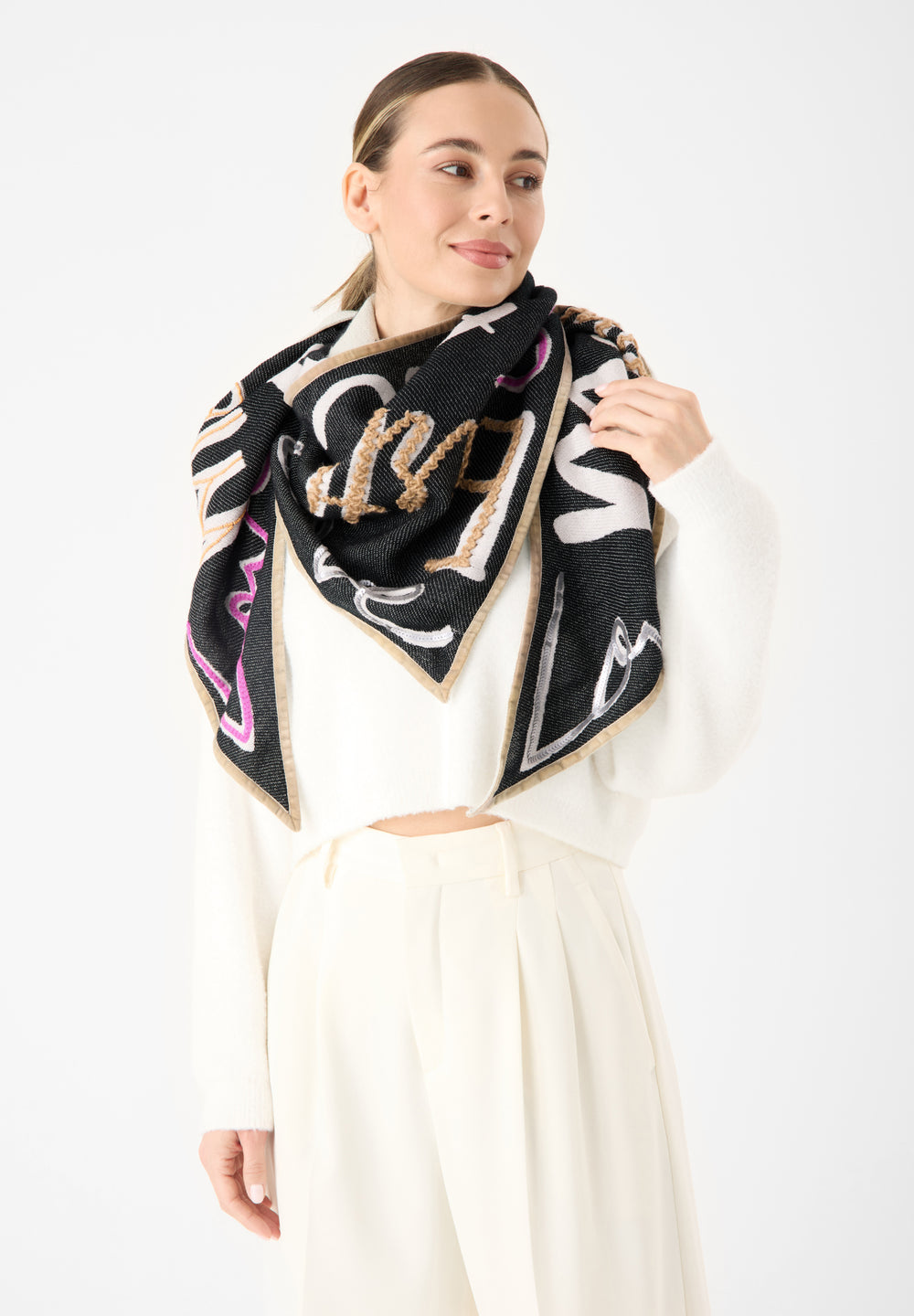 Dreieckstuch mit Statements Jacquard in Schwarz
