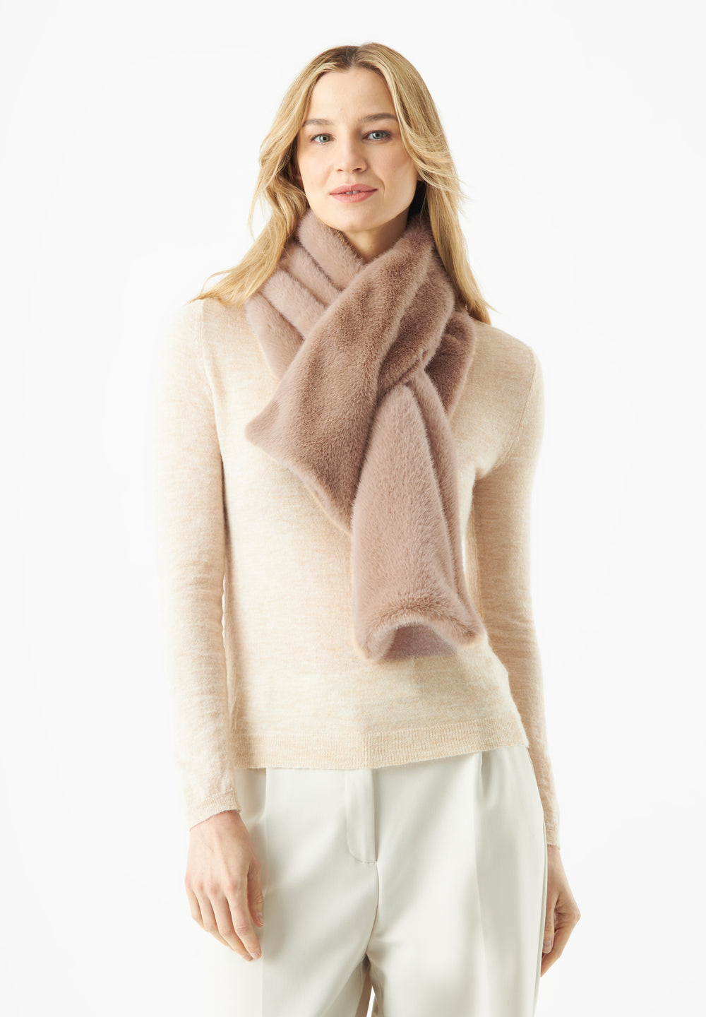 Elegant und wärmend zugleich: Dieser Kragenschal aus flauschigem Fake Fur in Beige bietet ein angenehm weiches Tragegefühl. Der praktische Schlitz sorgt für einen sicheren Sitz und macht das Styling besonders unkompliziert. Ein stilvolles Accessoire mit Komfortfaktor – ideal für kühlere Tage.