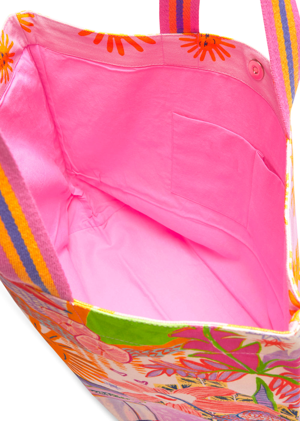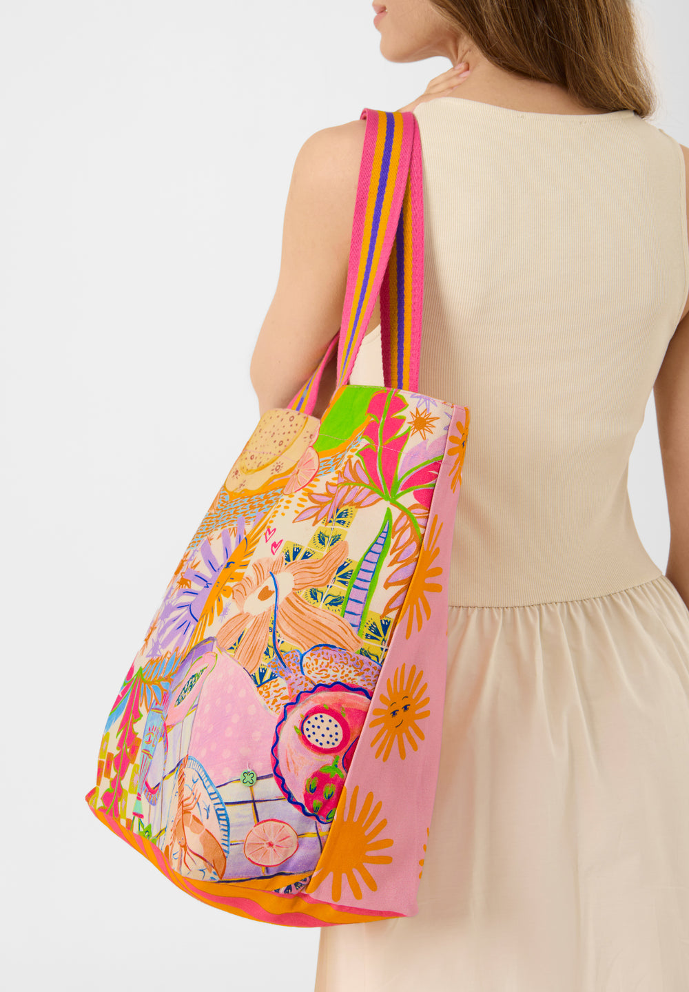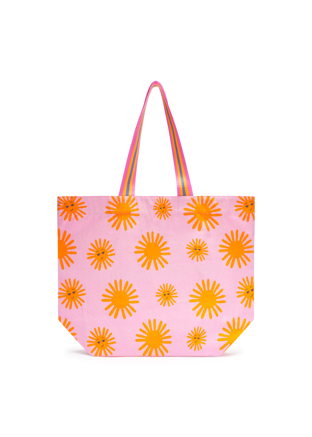 Gefertigt aus stabilem Canvas, überzeugt dieser gemusterte Shopper mit langlebiger Qualität und großzügigem Stauraum. Das Sonnen-Motiv verleiht dem Design eine warme, sommerliche Ausstrahlung. Dank der robusten Verarbeitung eignet sich die Tasche ideal für Alltag, Strand oder Reise.