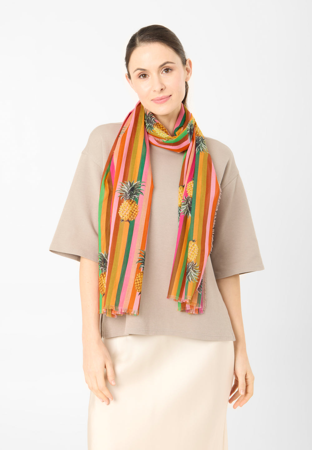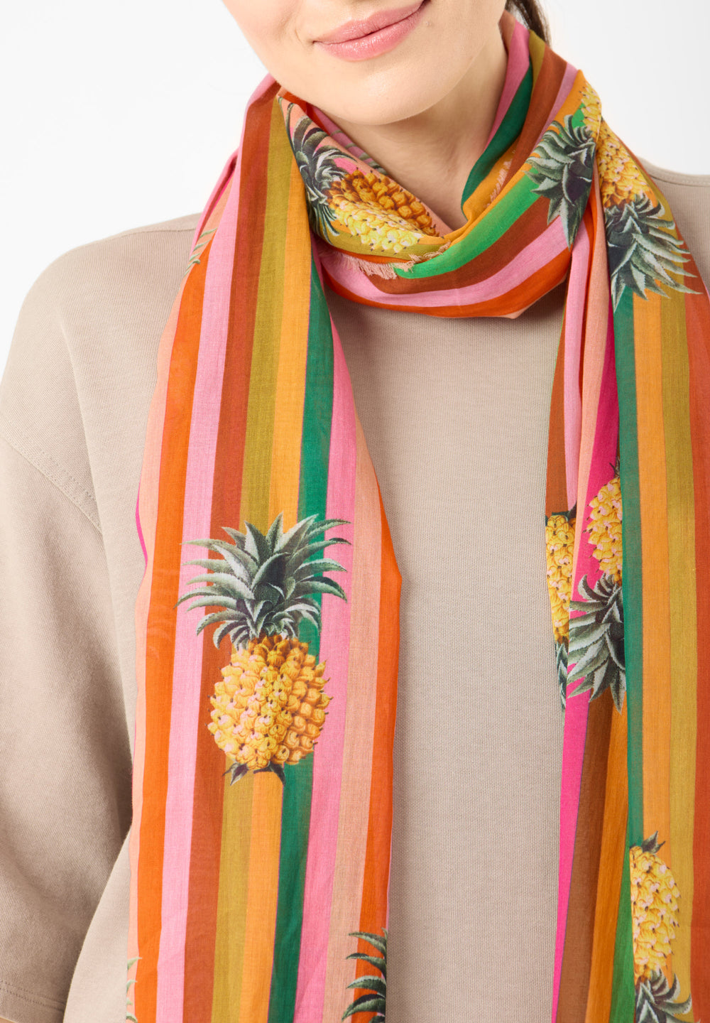 Gestreifter Schal aus Baumwolle mit Ananas-Motiven