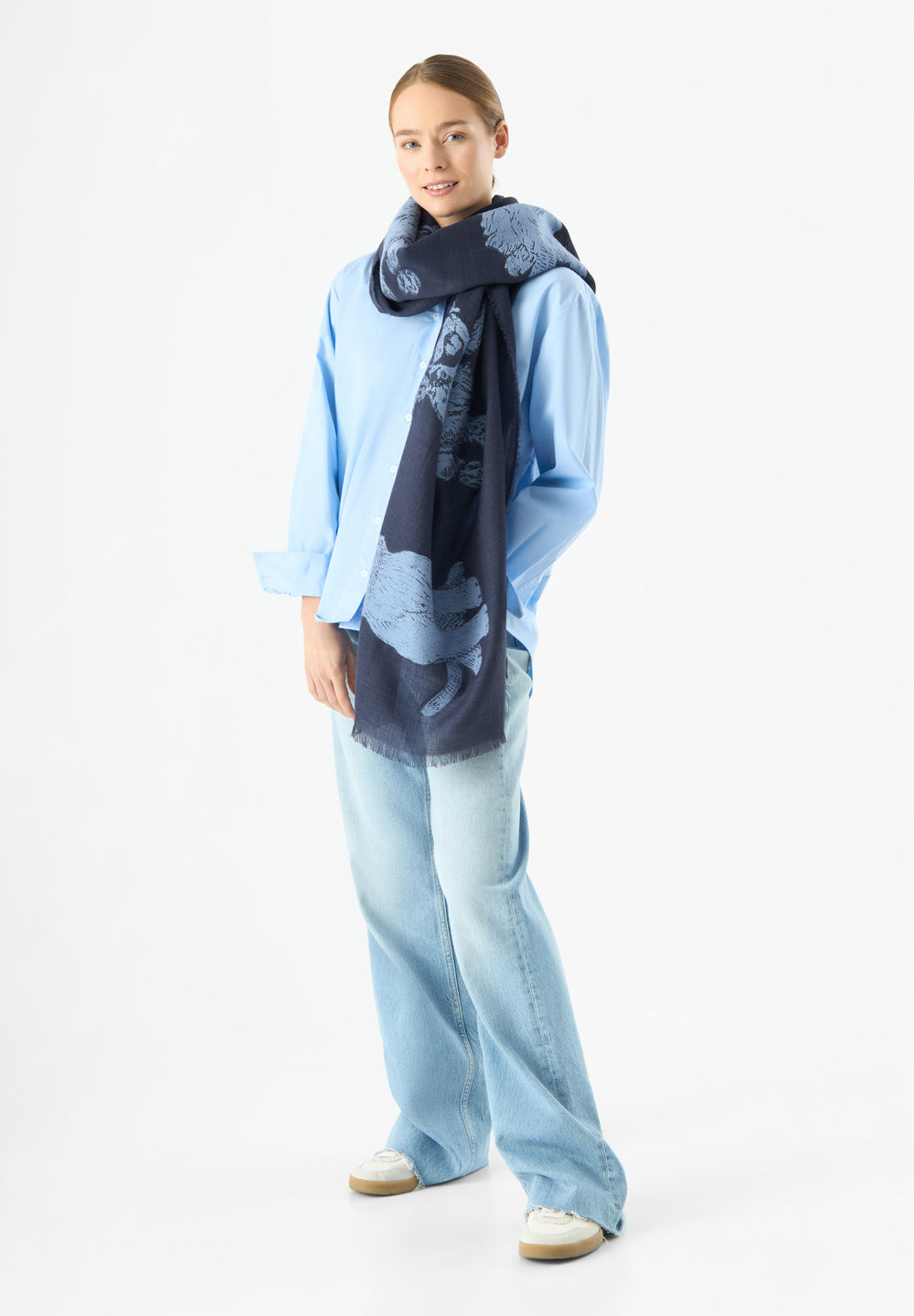 Verspielt und stilvoll zugleich: Dieser Schal mit feiner Jacquard-Struktur zeigt charmante Hunde- und Katzenmotive, die sich klar vom schwarzen Hintergrund abheben. Der angenehm leichte Baumwoll-Woll-Mix verleiht dem Modell eine feine Haptik und macht es zu einem besonderen Accessoire für individuelle Looks mit Charakter.