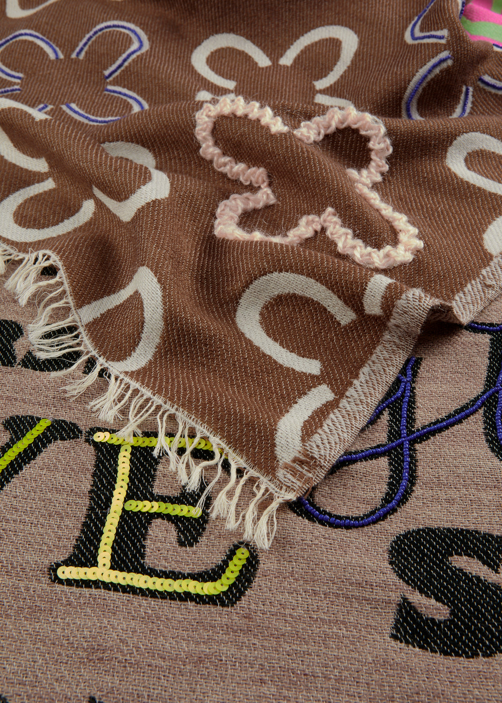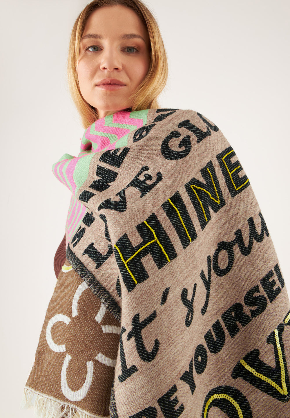 Fancy und sehr besonders! Dieser edle Jacquard-Schal aus #9 SIGNATURE MIX ist im modischen Pattern-Mix designt und wurde von Hand mit Perlen-, Pailletten- und Garnstickerei veredelt. Der dreiteilig inszenierte Schal besticht durch seinen handwerklichen Look, seinen voluminösen Griff sowie durch sein großzügiges und lässiges Format. Für seine Herstellung wurde eine angenehm warme und softe Mischung aus Wolle, Polyacryl und Baumwolle verwendet. Sie macht den Schal zu einem Favoriten für die kalte Jahreszeit.
