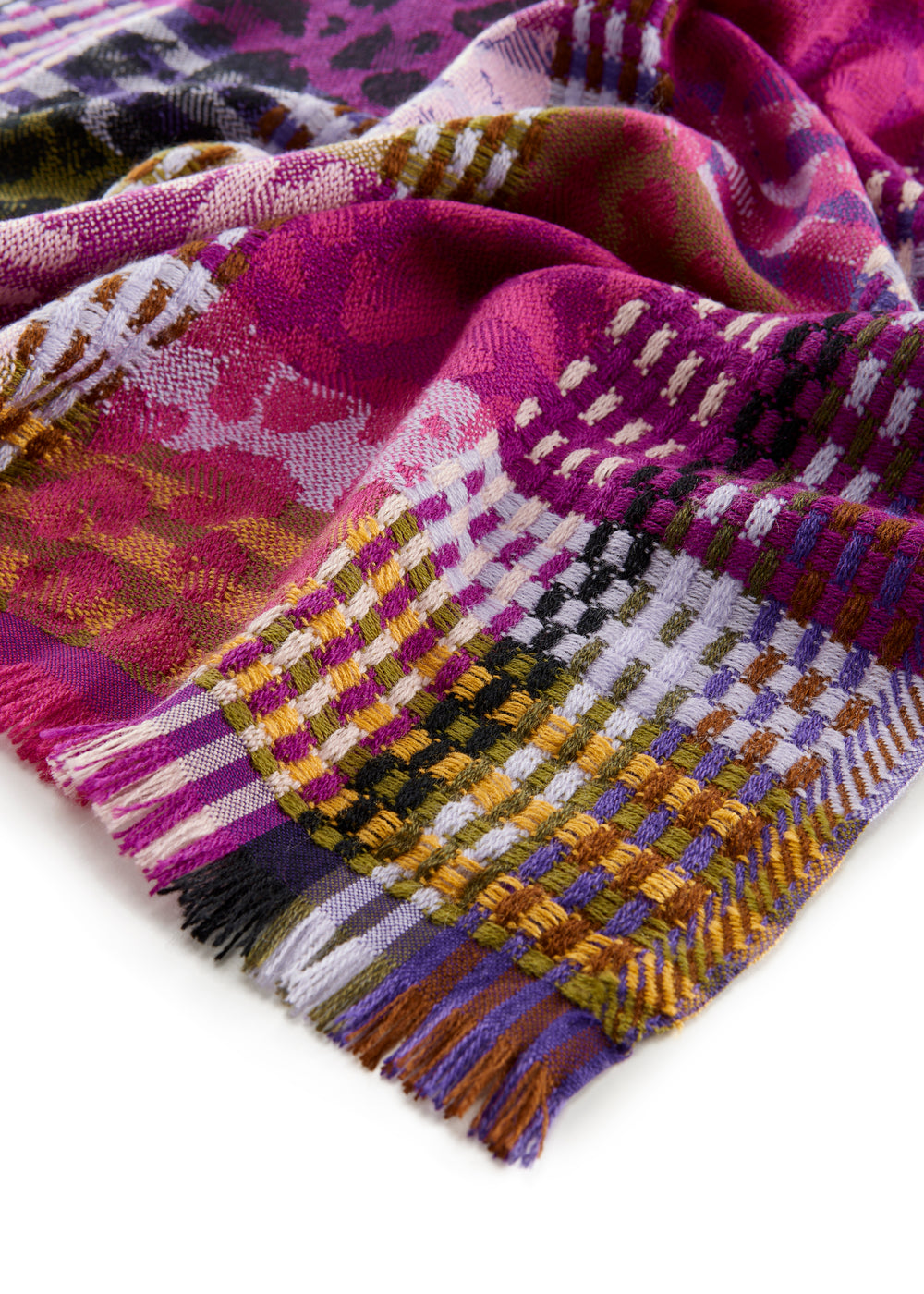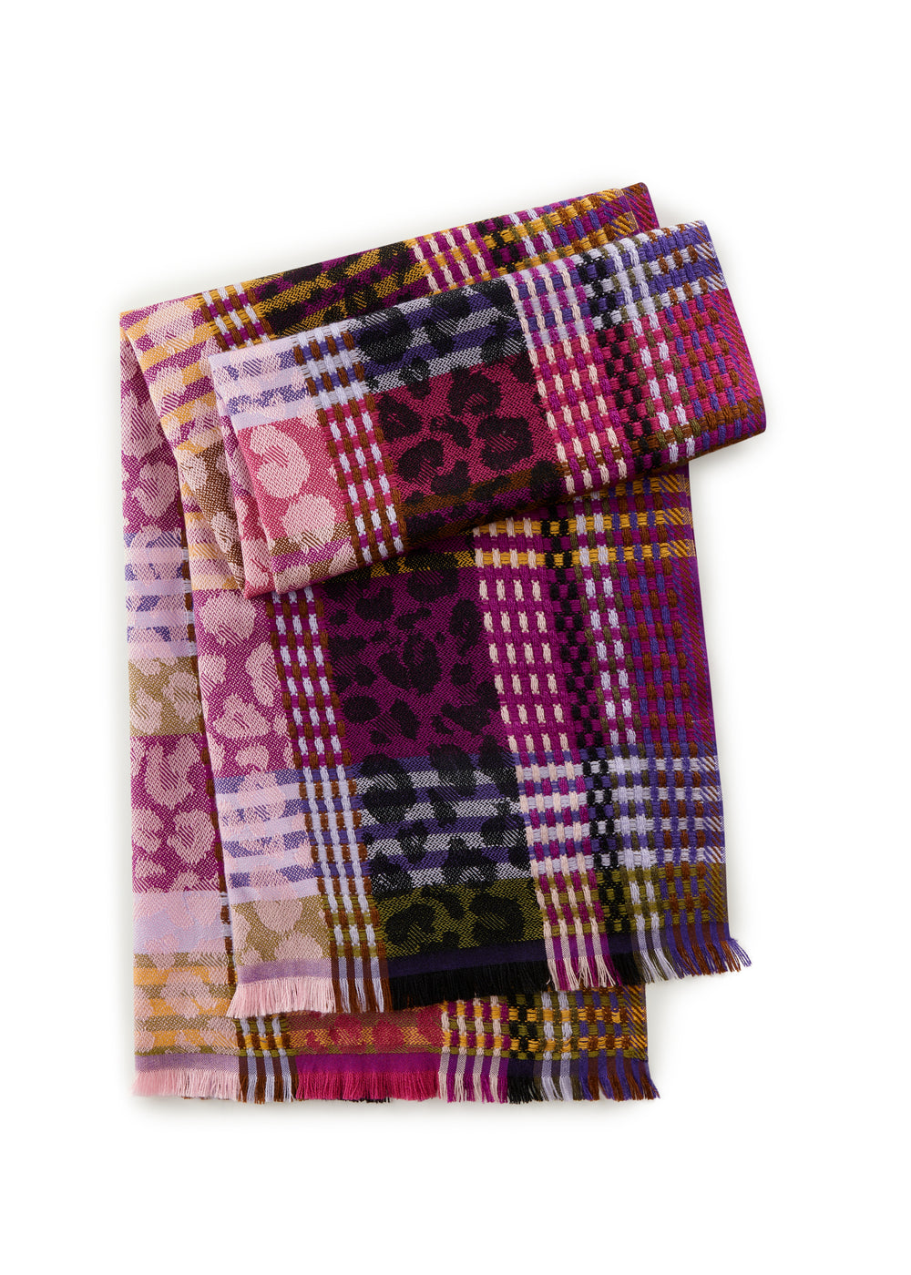 Dieser in hochwertiger Jacquard-Technik gewebte Schal vereint die beiden Musterklassiker Karo und Leo. Durch seine Farbigkeit wirkt der Schal aber alles andere als klassisch. In cooler Multi-Colour-Optik aus leuchtenden Garnen gefertigt, ist er ein echter Eyecatcher zum Beispiel auf herbstlichen Spaziergängen. Der hochwertige Materialmix aus Polyacryl und Wolle sorgt für Volumen und angenehme Wärme.