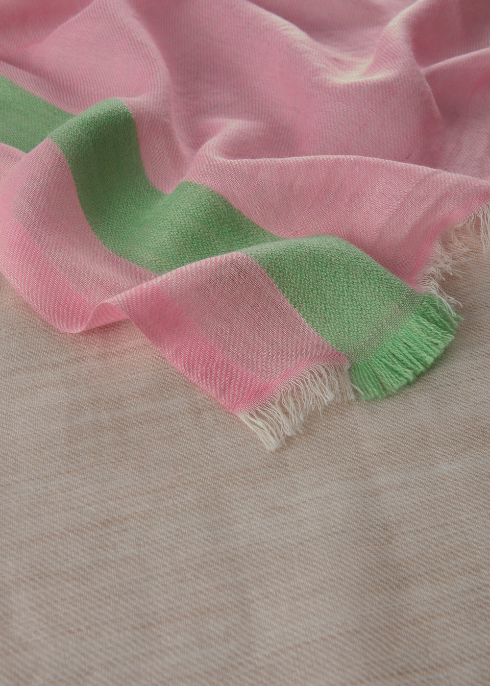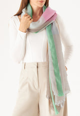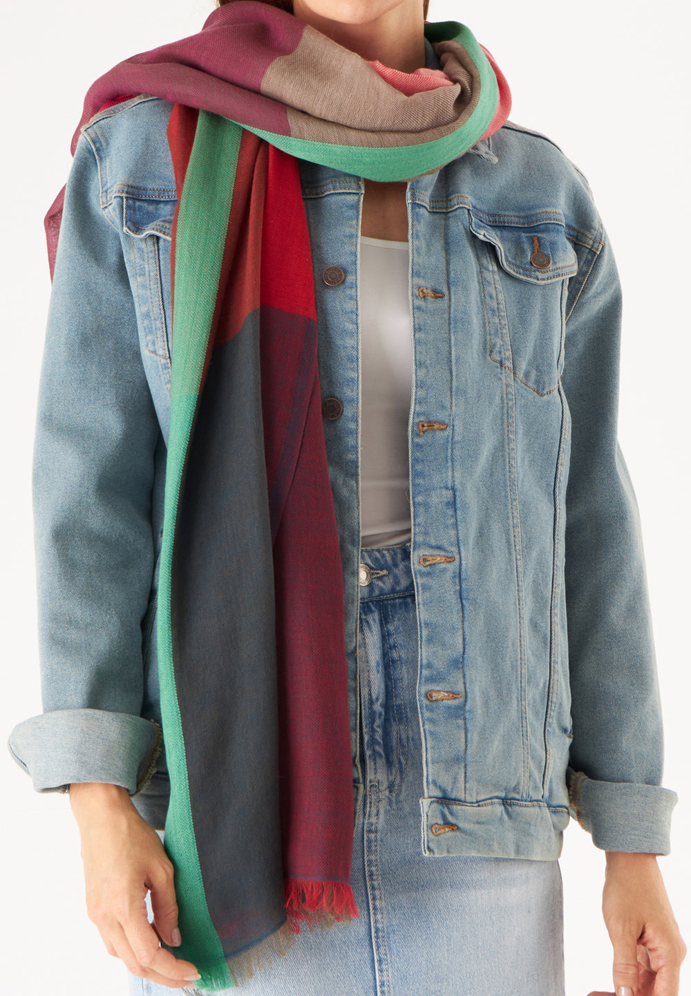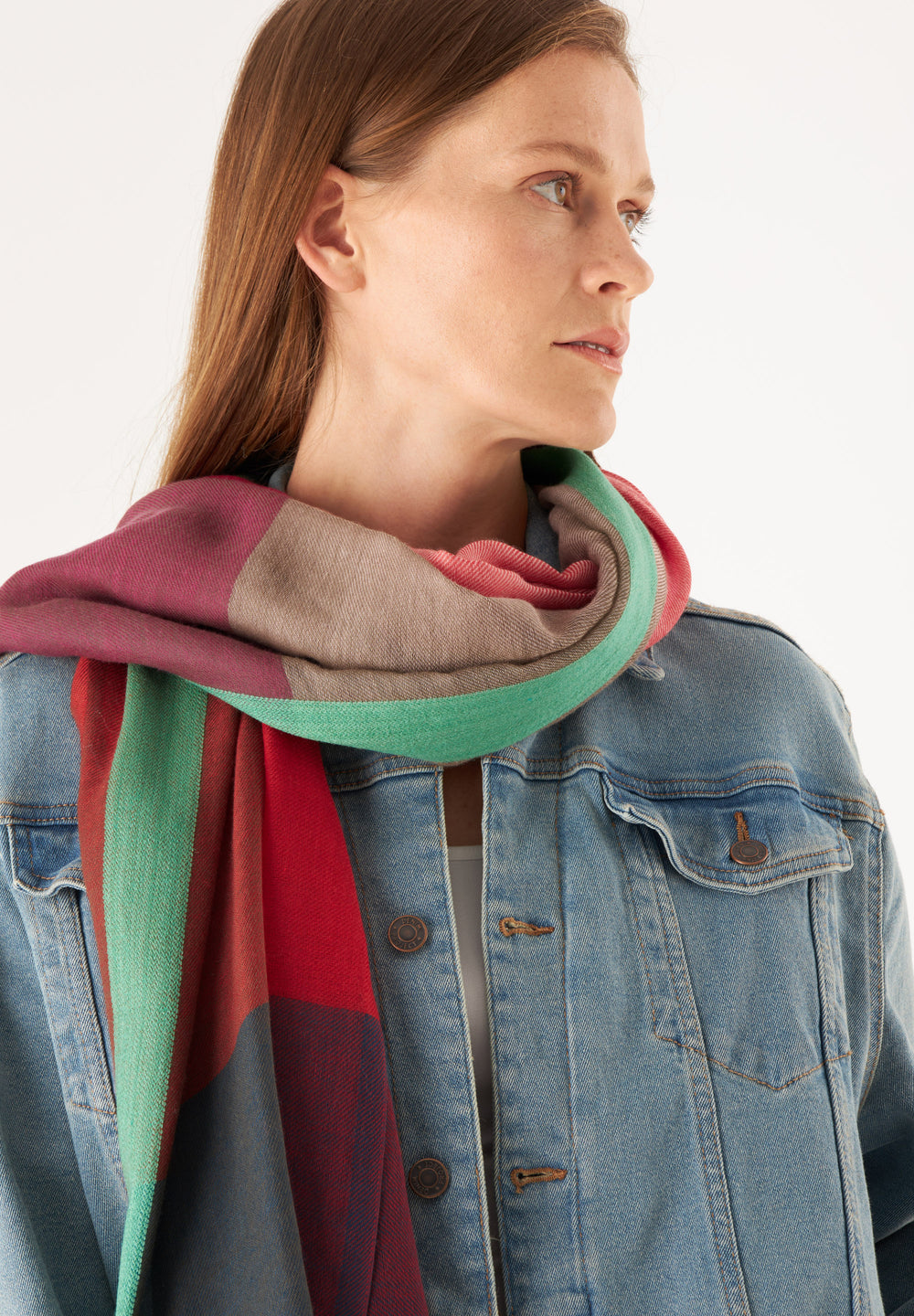 Home / Alle Produkte / Edler Jacquard-Schal im Colour Blocking Design