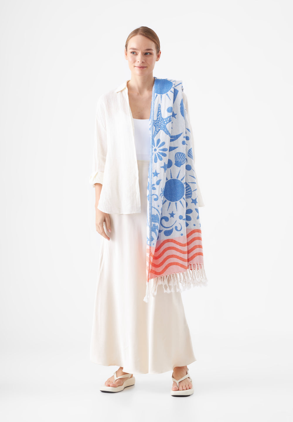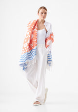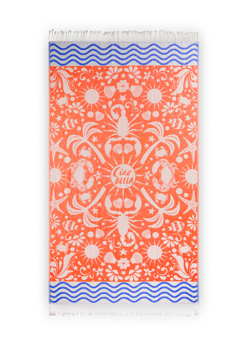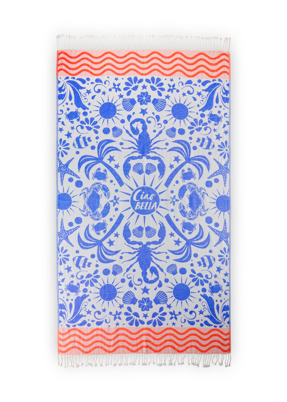 Let‘s go to the Beach! Natürlich mit diesem stylischen Strandtuch aus reiner Baumwolle. Das Badetuch ist holidaylike mit Seesternen, Muscheln, Palmen und Co. designt und hat lange gedrehte Fransen an den Abschlüssen. Baumwolle ist leicht, aber standfest, unkompliziert und hautfreundlich. Sie ist sehr vielseitig einsetzbar und überaus strapazierfähig. Das macht sie zu einer der wichtigsten Qualitäten in unserem Produkt-Portfolio.