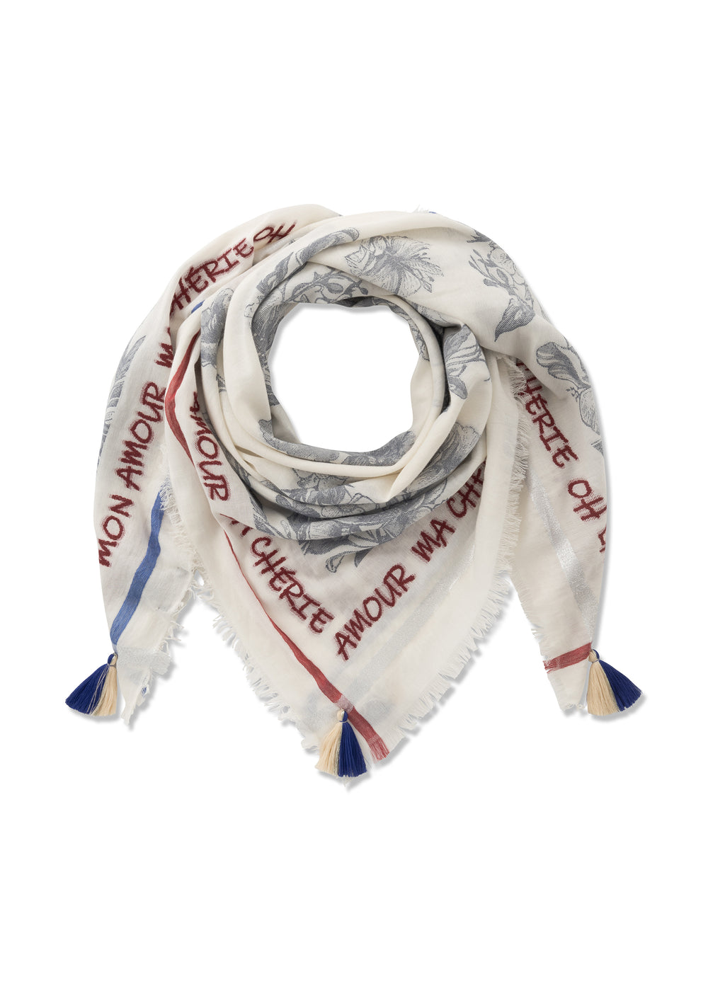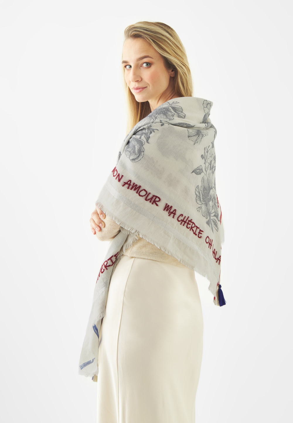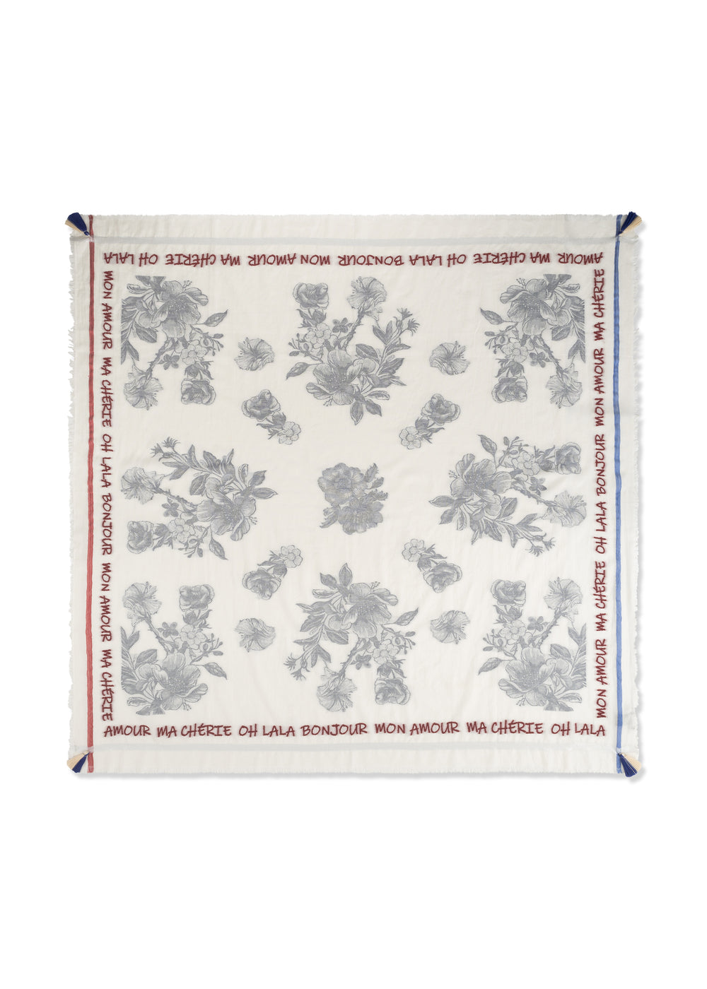 Dieses stilvolle Tuch aus einem hochwertigen Baumwoll-Mix begeistert mit  allover Blumenmuster und umlaufender Statement-Stickerei. Zarte Akzente aus metallischem Garn verleihen edlen Schimmer. Durch die Jacquard-Weberei entsteht ein detailreiches Design mit kontrastierenden Farben, feiner Struktur und modernem Charme.