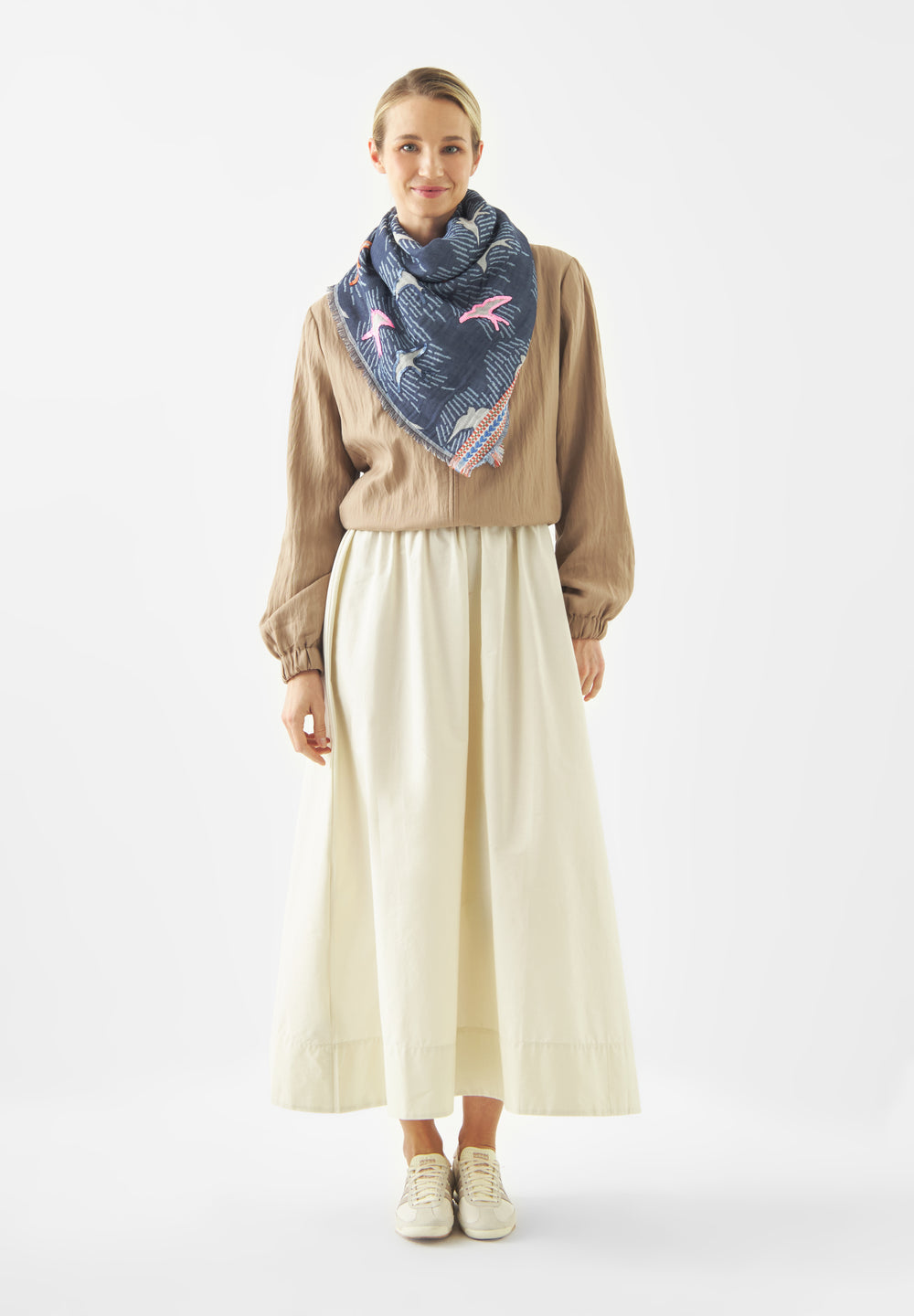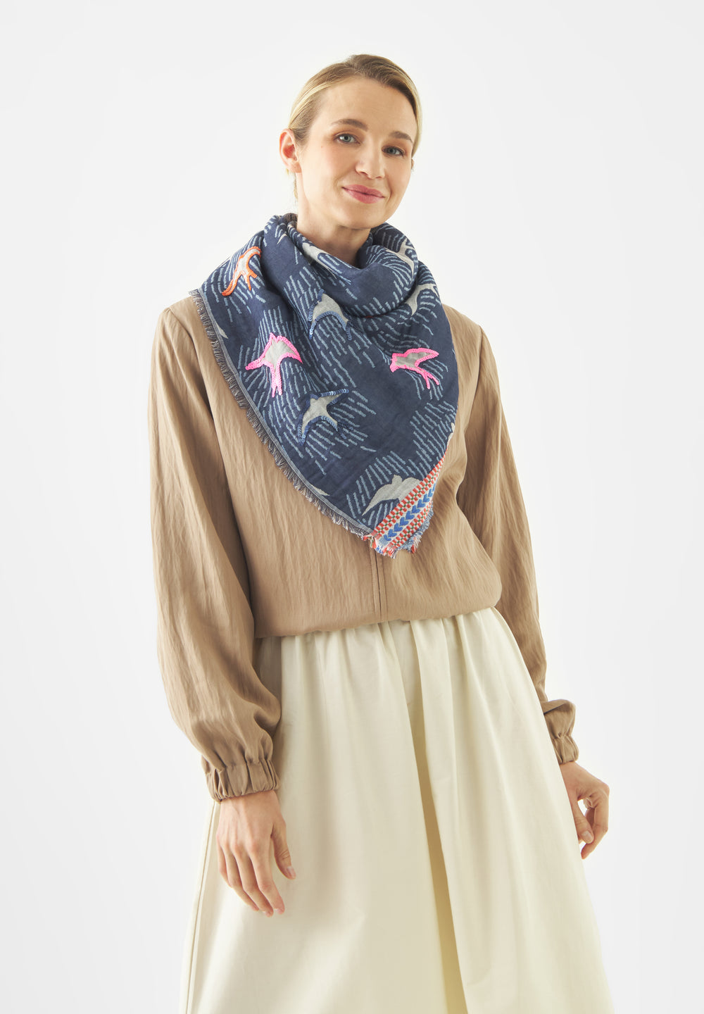 Jacquard-Tuch aus Baumwoll-Mix mit Vogelmotiven