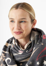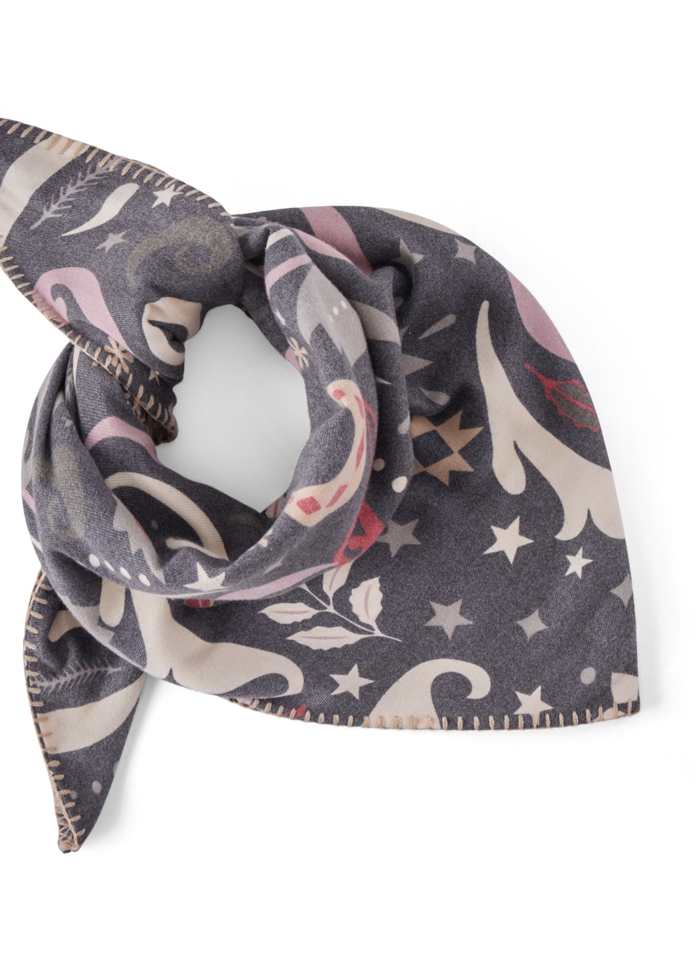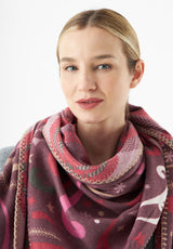 Dieses kaschmirweiche Dreieckstuch verbindet ornamentale Muster mit moderner Ausstrahlung. Der tiefe Schwarzton und Rot hebt die feinen Details wirkungsvoll hervor, während die angenehm leichte Qualität komfortables Tragen ermöglicht. Ein stilvolles Accessoire, das sich vielseitig kombinieren lässt und modernen Looks eine besondere Tiefe verleiht.