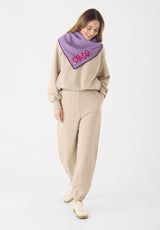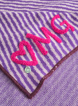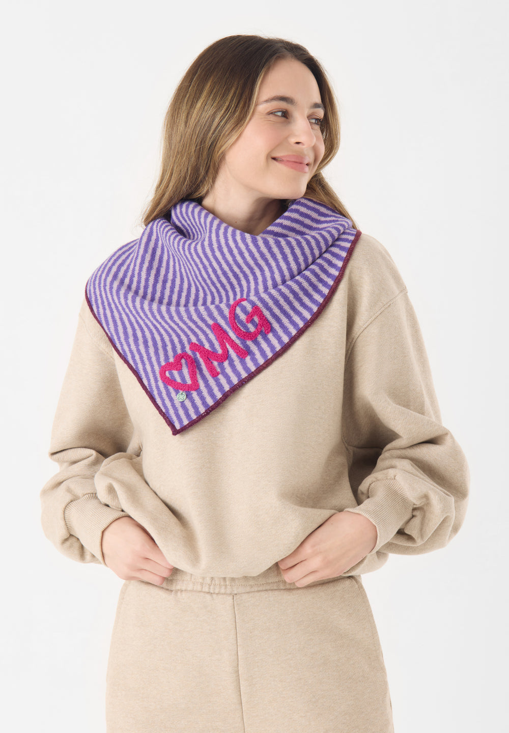 Lässig, warm und mit liebevollem Detail: Dieses gestrickte Dreieckstuch in Schwarz überzeugt mit sportiven Streifen und einer OMG-Herz-Stickerei. Der weiche Wollmix sorgt für wohlige Wärme, während das legere Design vielseitig kombinierbar ist – perfekt für entspannte Winterstyles mit Persönlichkeit.