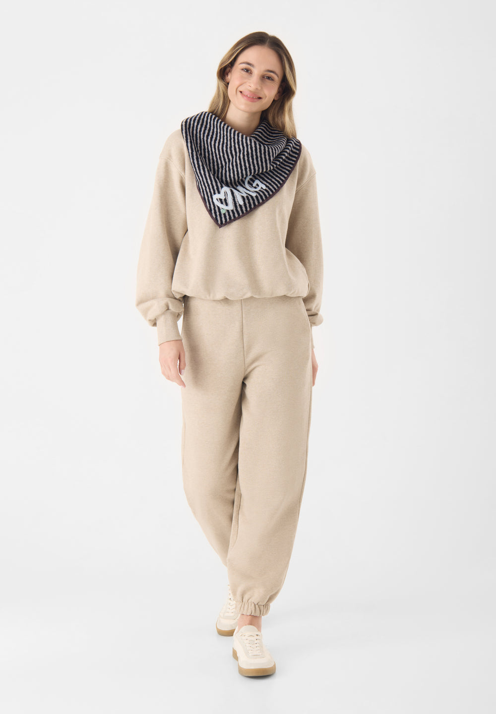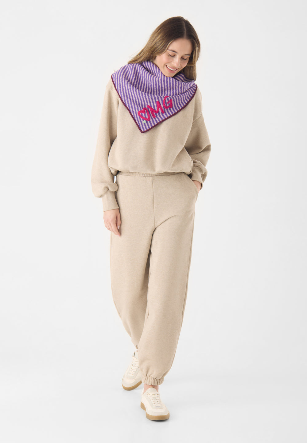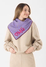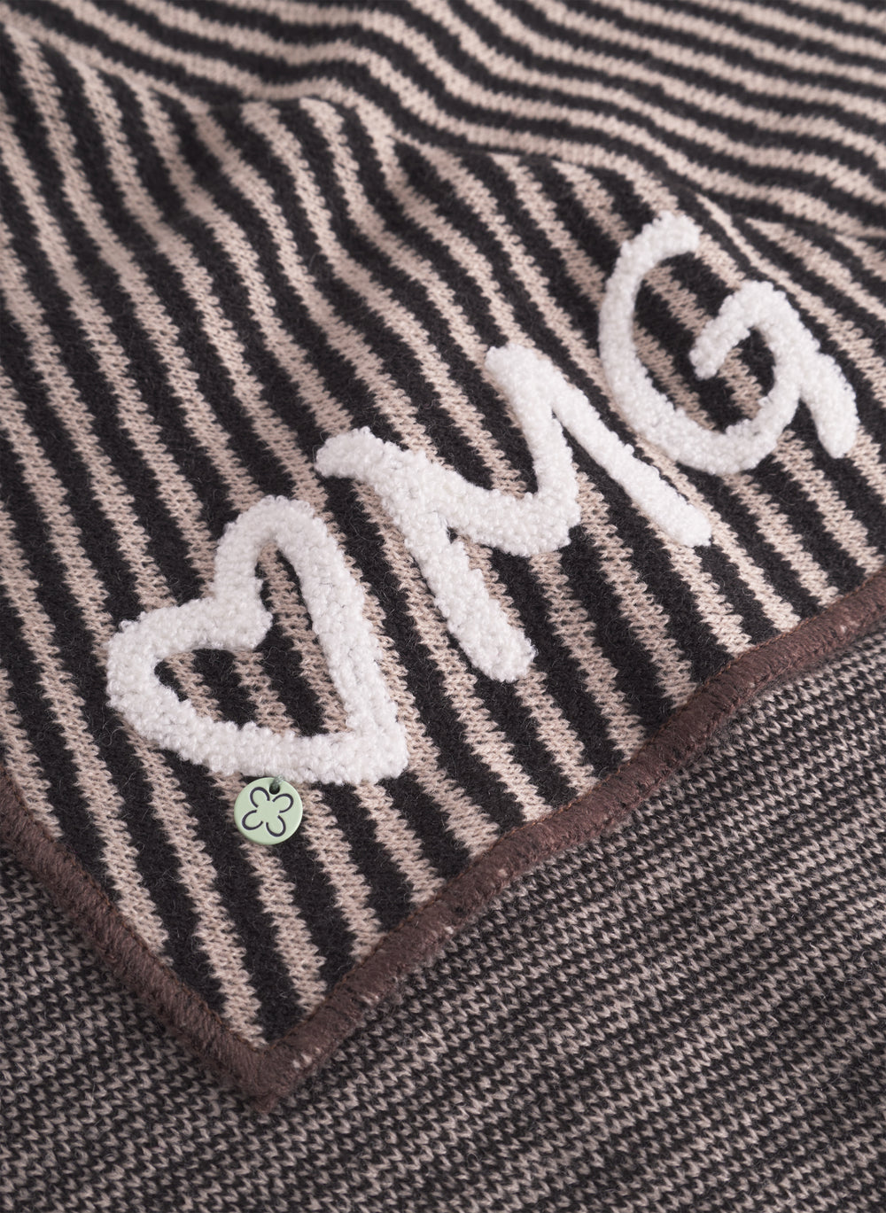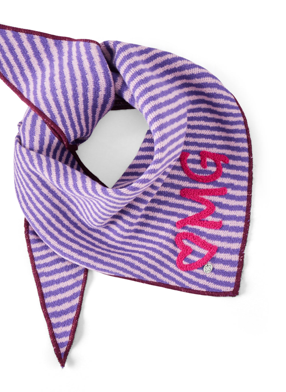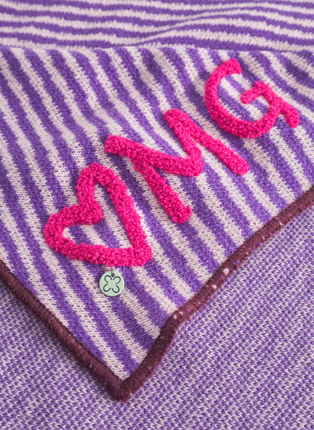 Home / Alle Produkte / Gestricktes Dreieckstuch mit Streifen & Stickerei
