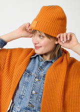 Fashionistas lieben unsere klassische Rippstrick-Mütze, weil sie so cosy ist und dank kuschligem Fleece-Futter garantiert nicht kratzt. Es gibt sie in allen Basic-Farben und saisonalen Trendtönen. Wer mag, trägt die Beanie zusammen mit dem passenden Schal, den du auch bei uns im Sortiment findest. Die Mütze ist mit einem breiten Krempelrand und einem Ton-in-Ton-Logo aus unserer kuscheligen #19 WINTER GOLD Qualität gefertigt. Diese winterliche Strick-Qualität aus superweichem, robustem Polyacryl und feiner Wolle ist besonders soft und wärmend.