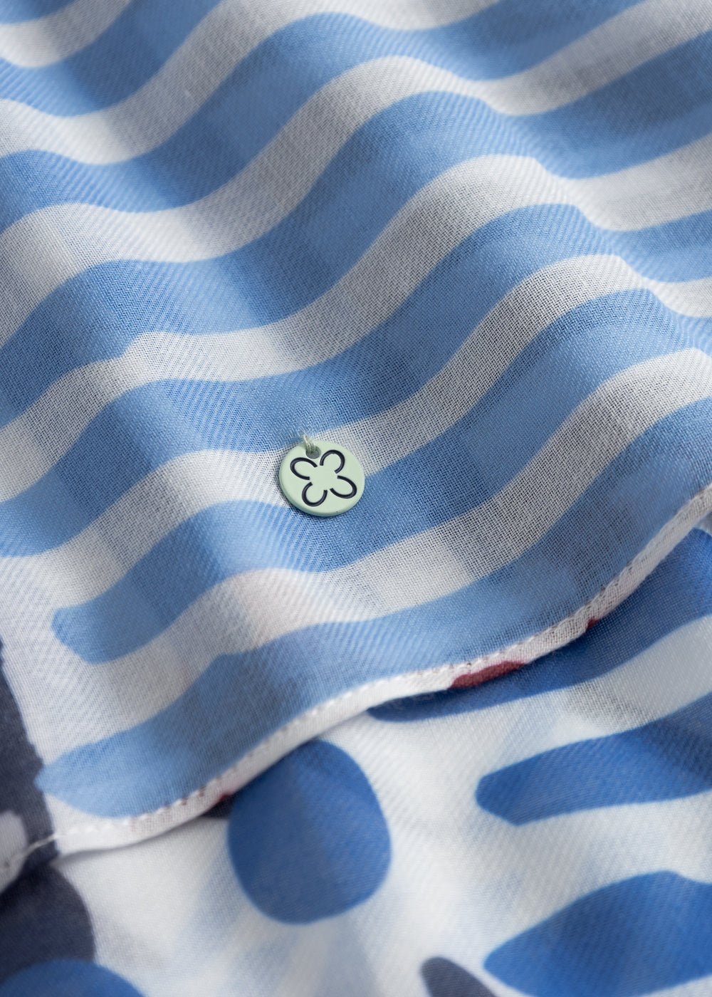 Dein Styling-Aufwand ist gering, der Effekt groß! Diesen Schlauchschal einfach zweimal um den Hals legen – und schon wird aus einem Basic-Outfit ein sommerlicher Trend-Look. Das grafische Muster und die nachhaltige Qualität machen den Loop zu einem Lieblingsaccessoire, das du bestimmt gern und oft trägst