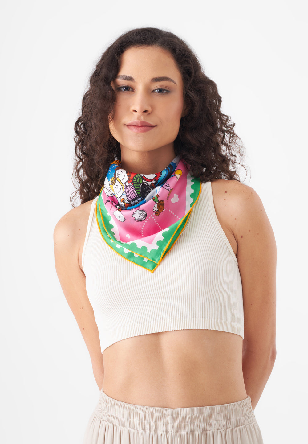 Mehr als nur Comic-Helden! Die Peanuts™ werden auf unseren Schals und Tüchern zu lebendigen Alltagsbegleitern! So wie auf diesem Nickituch aus reiner Seide, das du nach Lust und Laune als Halstuch, Haarschmuck, Armband oder dekoratives Taschen-Accessoire tragen kannst. Das kleine Peanuts™ Tuch wurde aus wertvoller Seide in einer ausgewählten, chinesischen Seidenmanufaktur gefertigt, mit der uns eine langjährige Partnerschaft verbindet. Das Mini-Carré besticht durch seinen angenehm kühlen und geschmeidig weichen Griff, sein luxuriöses Tragegefühl und seine einzigartige Farbbrillanz.