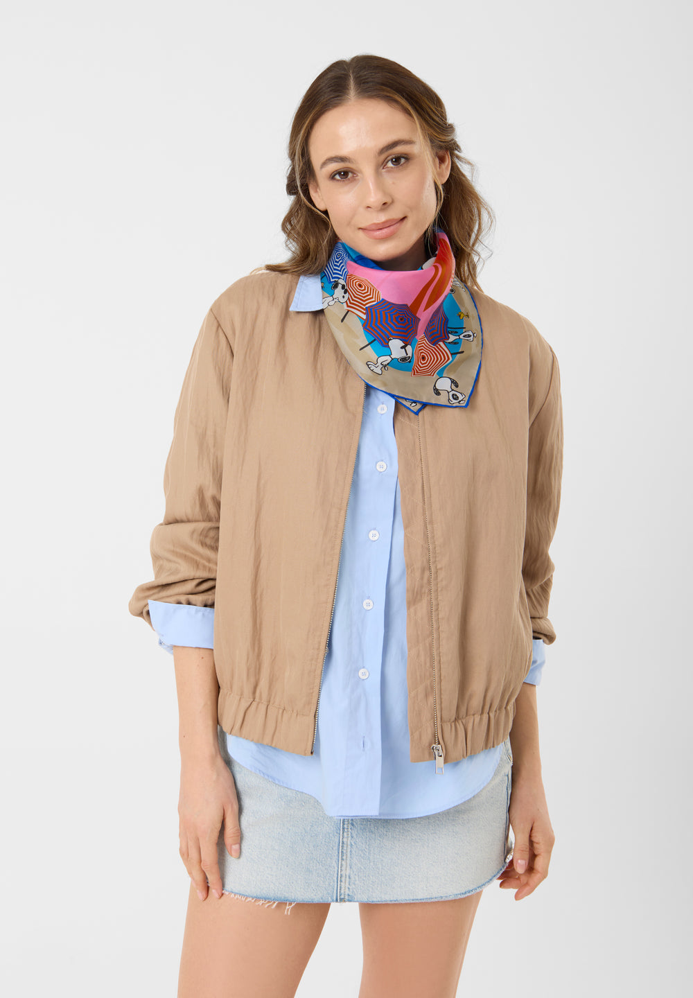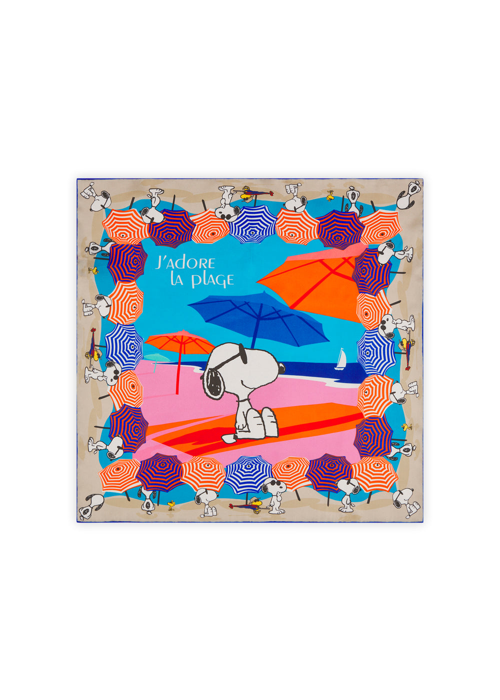 Dieses Nicki-Tuch aus reiner Seide ist mit einem Snoopy-Motiv und der „J’ADORE LA PLAGE“-Quote gestaltet. Die feine Seidenqualität fühlt sich angenehm leicht und geschmeidig an und sorgt für ein elegantes Tragegefühl. Als Halstuch, am Handgelenk oder als Detail an der Tasche getragen, lässt es sich vielseitig in sommerliche Looks integrieren.