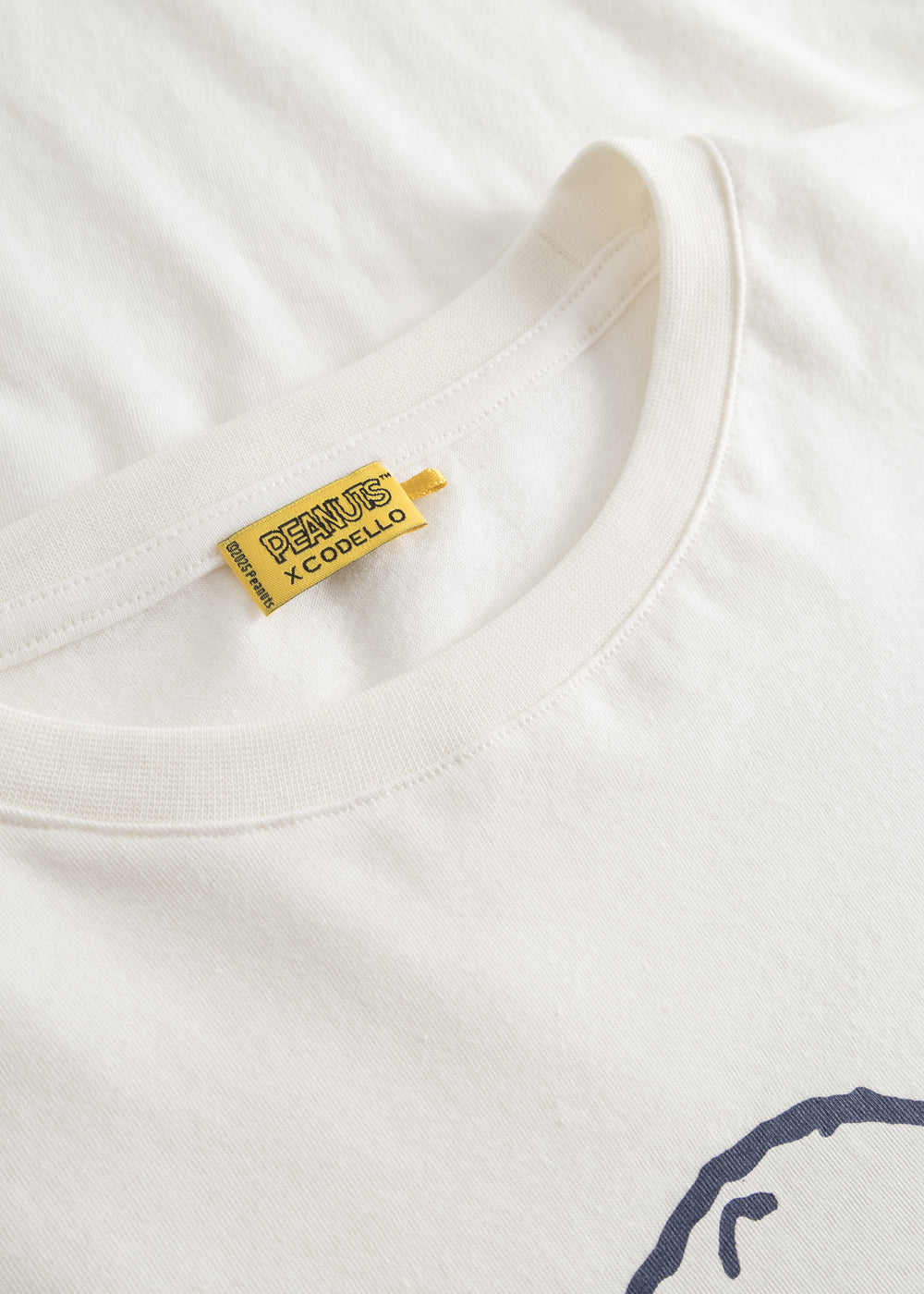 Dieses weiße PEANUTS™ Longsleeve macht Eindruck – mit Snoopy und einem großen Herzen als Eyecatcher. Reine Baumwolle sorgt für ein weiches, atmungsaktives Tragegefühl. Das Shirt funktioniert solo genauso stark wie im Layering unter Jacken und Strick.