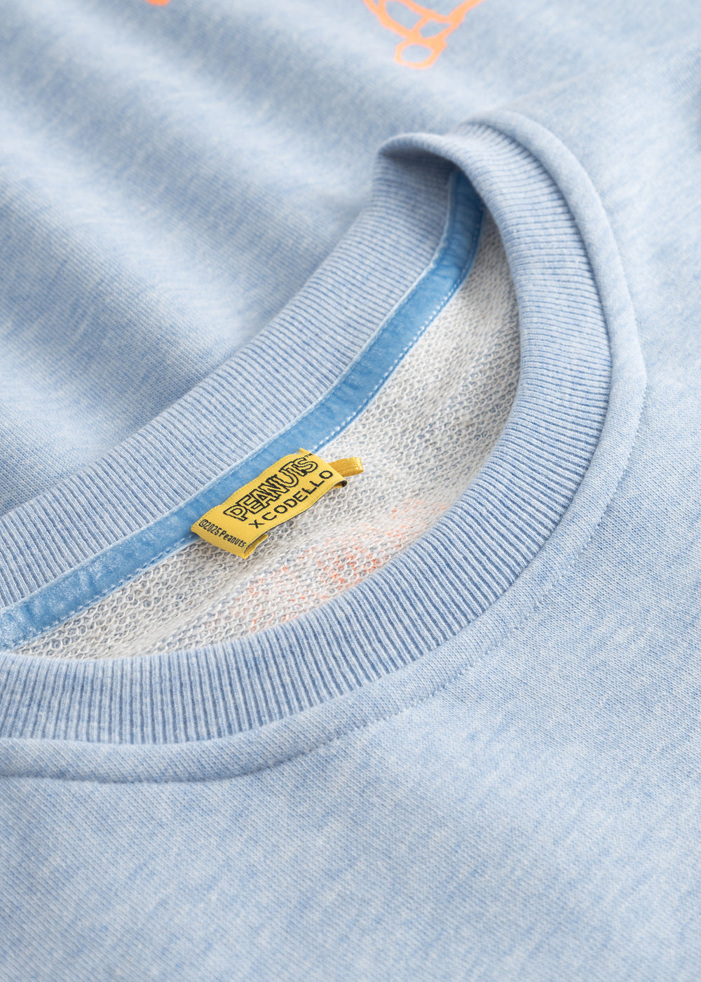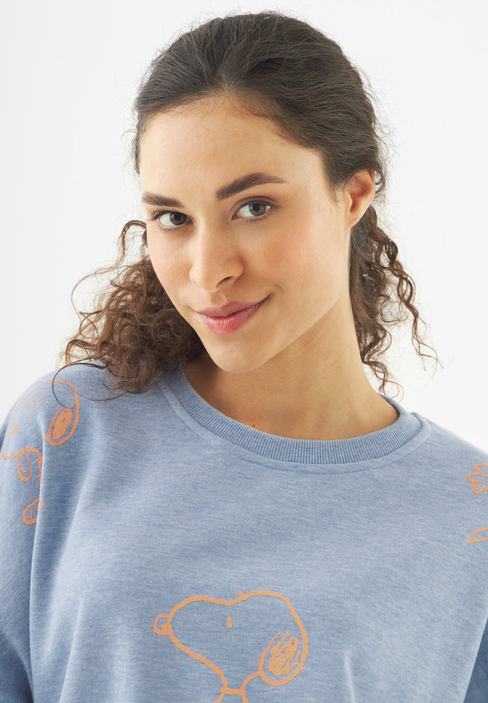 Dieses PEANUTS™ Sweatshirt in Denim-Blau bringt mit verspielten Snoopy-Motiven frischen Charme in den Alltag. Der weiche Baumwoll-Mix liegt angenehm auf der Haut und sorgt für hohen Tragekomfort – ideal für entspannte Stylings. Ein moderner Wohlfühl-Look, der lässig wirkt und dennoch liebevolle Details ins Spiel bringt.