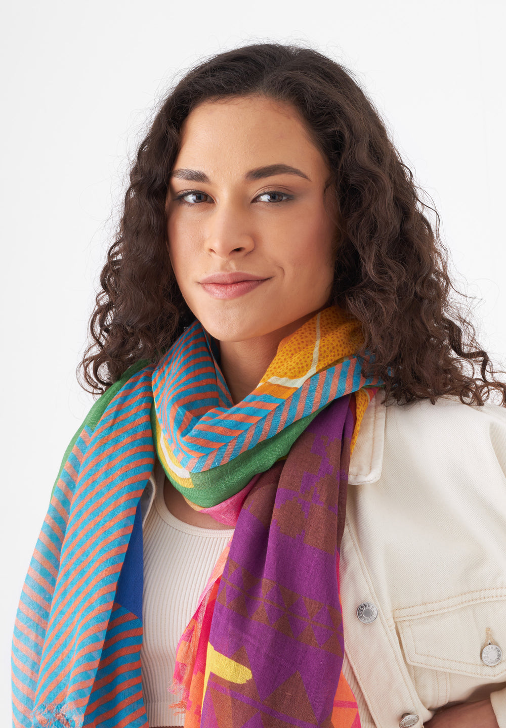 Unsere neuen Art School Schals stimmen dich mit farbenfrohen Cocktail-Prints aufs Schönste auf den Sommer ein. Dieser angenehm leichte und luftige Schal mit coolem „Tequila“-Print kommt in der Stadt und am Strand toll zum Tragen. Der Schal wurde aus einer hochwertigen Materialmischung aus Baumwolle, Modal und Leinen gefertigt, die mit hohem Tragekomfort überzeugt. Sie vereint die Vorzüge der drei Fasern. Leinen steht für eine edle Optik gepaart mit einer kernigen Griffigkeit. Modalfasern geben dem Schal Weichheit. Der Baumwollanteil sorgt für Lässigkeit und Unkompliziertheit. Der natürliche Kühleffekt und die gute Luftdurchlässigkeit machen den Stoff vor allem bei warmen Temperaturen sehr beliebt.