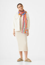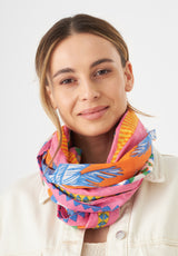 Bei diesem Schal aus #20 ORGANIC COTTON akzentuiert ein mittiges Samtband den stylischen Mix von Ikat- und Palmen-Print. Kombinieren lässt sich der angenehm leichte Schal variantenreich. Er passt zu allen Sommer-Looks, kommt aber auch ins Haar drapiert oder als Gürtel getragen super an. Unsere Bio-Baumwolle ist GOTS-zertifiziert. Ihr Anbau erfolgt durch Kleinbetriebe und verbraucht weniger Wasser. Der Einsatz von Pestiziden wird weitestgehend ausgeschlossen.