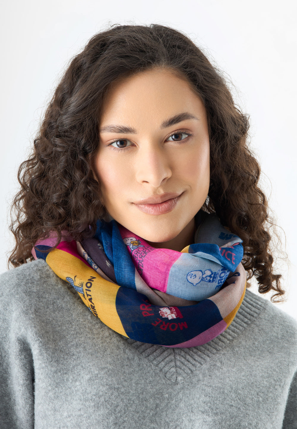 Mix and match! Dieser stylische Schal mit buntem Karomuster und charmanten Peanuts™-Figuren bringt verspielte Leichtigkeit in jedes Outfit. Hergestellt aus recyceltem Polyester ist er formstabil, knitterfrei und farbecht. Mit REPREVE-Zertifikat gehört er zu unserer nachhaltigen „Poly Perfect“-Linie.