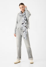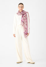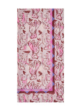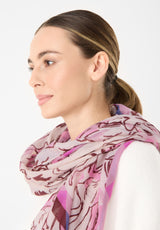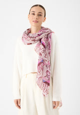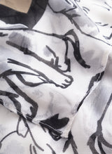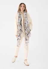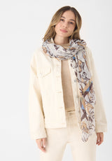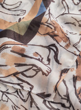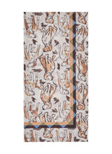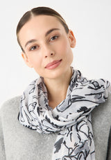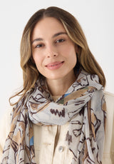Dieser Schal aus recyceltem Polyester setzt auf ein verspieltes Allover-Hunde-Motiv in Beige, das von einem dunkleren Rahmenmuster kontrastreich eingefasst wird. Die leichte Qualität liegt angenehm auf der Haut und macht das Design zum unkomplizierten Begleiter – alltagstauglich und charmant interpretiert.