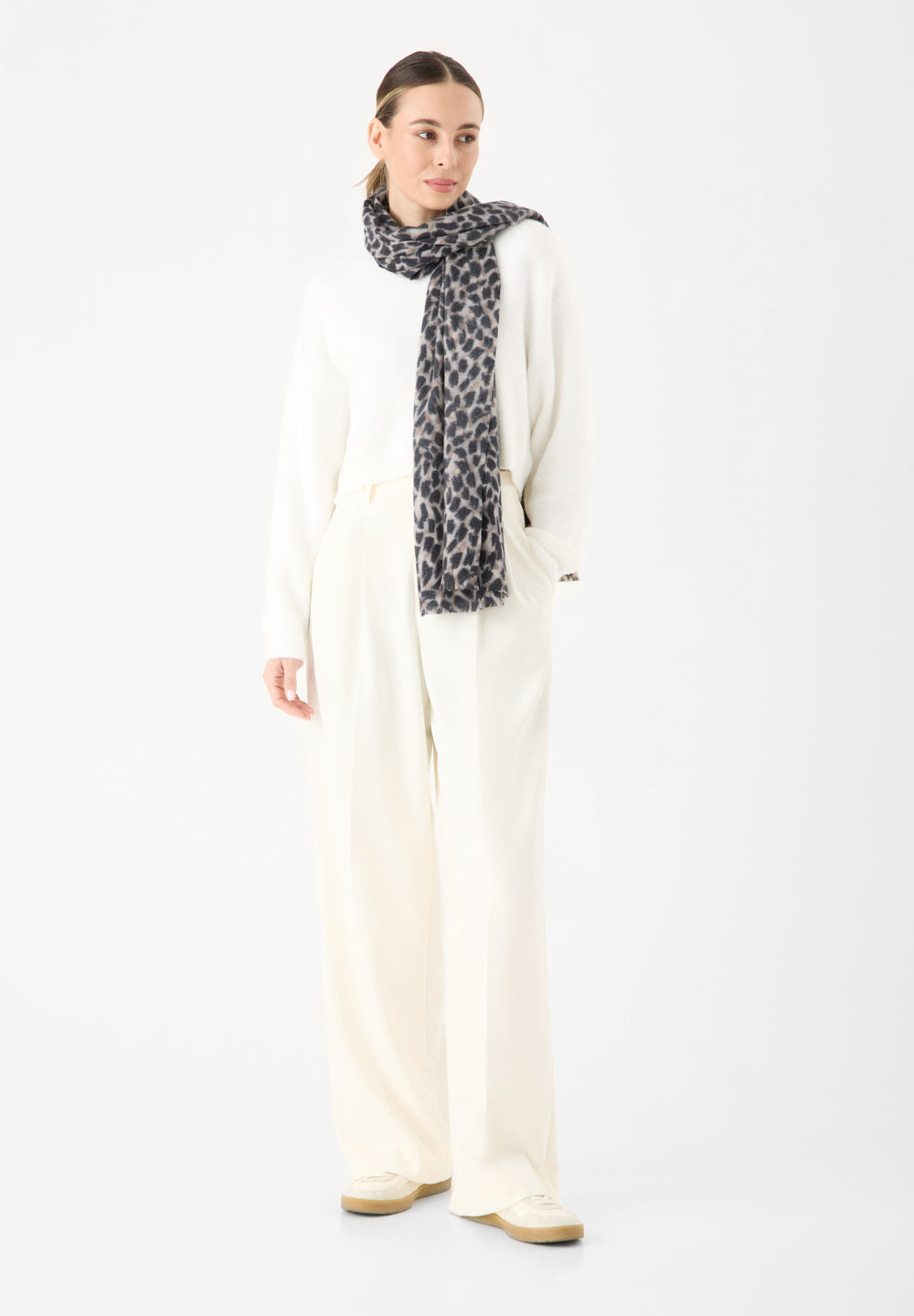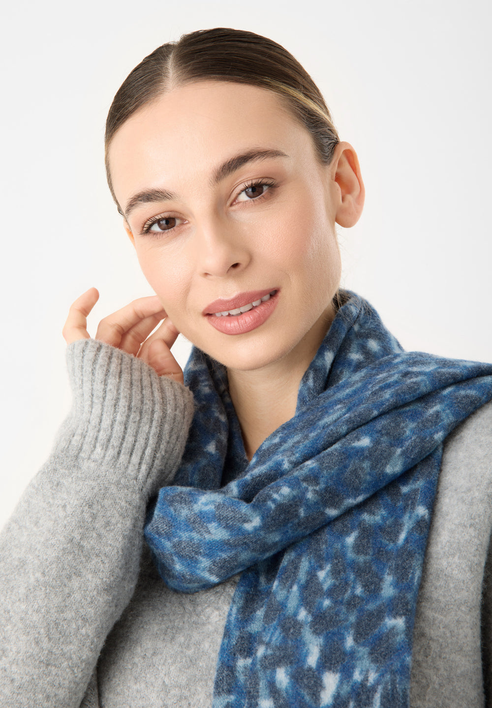 Dieser kaschmirweiche Schal kombiniert ein modernes, abstraktes Leo-Muster mit tiefen Blautönen zu einem ausdrucksstarken Design. Die angenehm weiche Haptik sorgt für ein behagliches Gefühl, während das markante Muster jedem Look eine individuelle Note verleiht. Ein stilvolles Accessoire mit modischem Statement-Charakter.