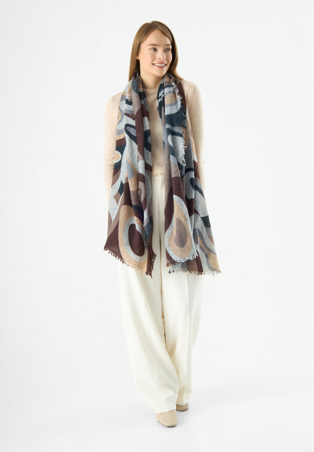 Dieser elegante Schal in intensiven Blautönen begeistert mit seinem feinen, organischen Muster und dem edlen Wolle-Kaschmir-Mix. Die hochwertige Materialkombination verleiht dem Schal eine außergewöhnliche Leichtigkeit und einen luxuriösen Griff. Ein besonderes Accessoire, das jedes Outfit geschmackvoll abrundet.