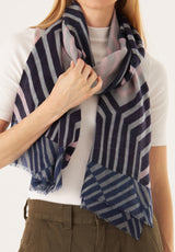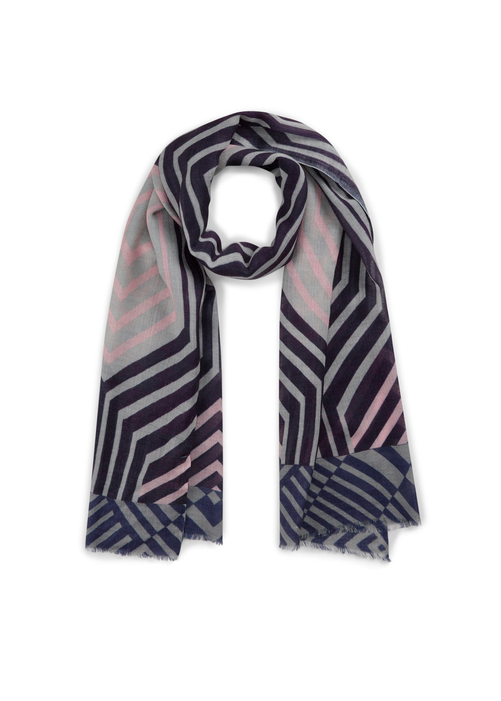 Dieser grafisch inszenierte Unisex-Schal ist ein zeitloses Lieblingsstück, das von allen getragen werden kann. Er wurde aus unserer #15 WOOL BLEND Qualität gefertigt und eignet sich für Indoor- und Outdoor-Stylings. WOOL BLEND verbindet die beiden Fasern Wolle und Modal. Wolle gibt den Produkten Wärme und Volumen, Modal Weichheit. Der Griff ist typisch wollig und hat Stand. Wir bieten diese Qualitätsmischung bevorzugt in den Winter-Kollektionen an. Der Schal wurde in einem innovativen Verfahren mit einem grafischen Muster digital bedruckt und dann in einem Veredelungsverfahren heiß gewaschen. Dadurch bekommt er einen lässigen "Used Look".