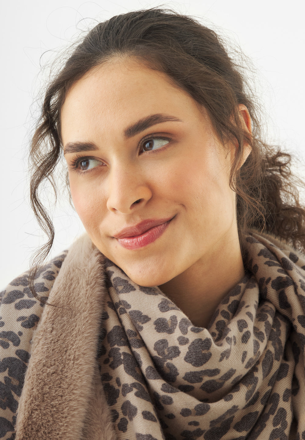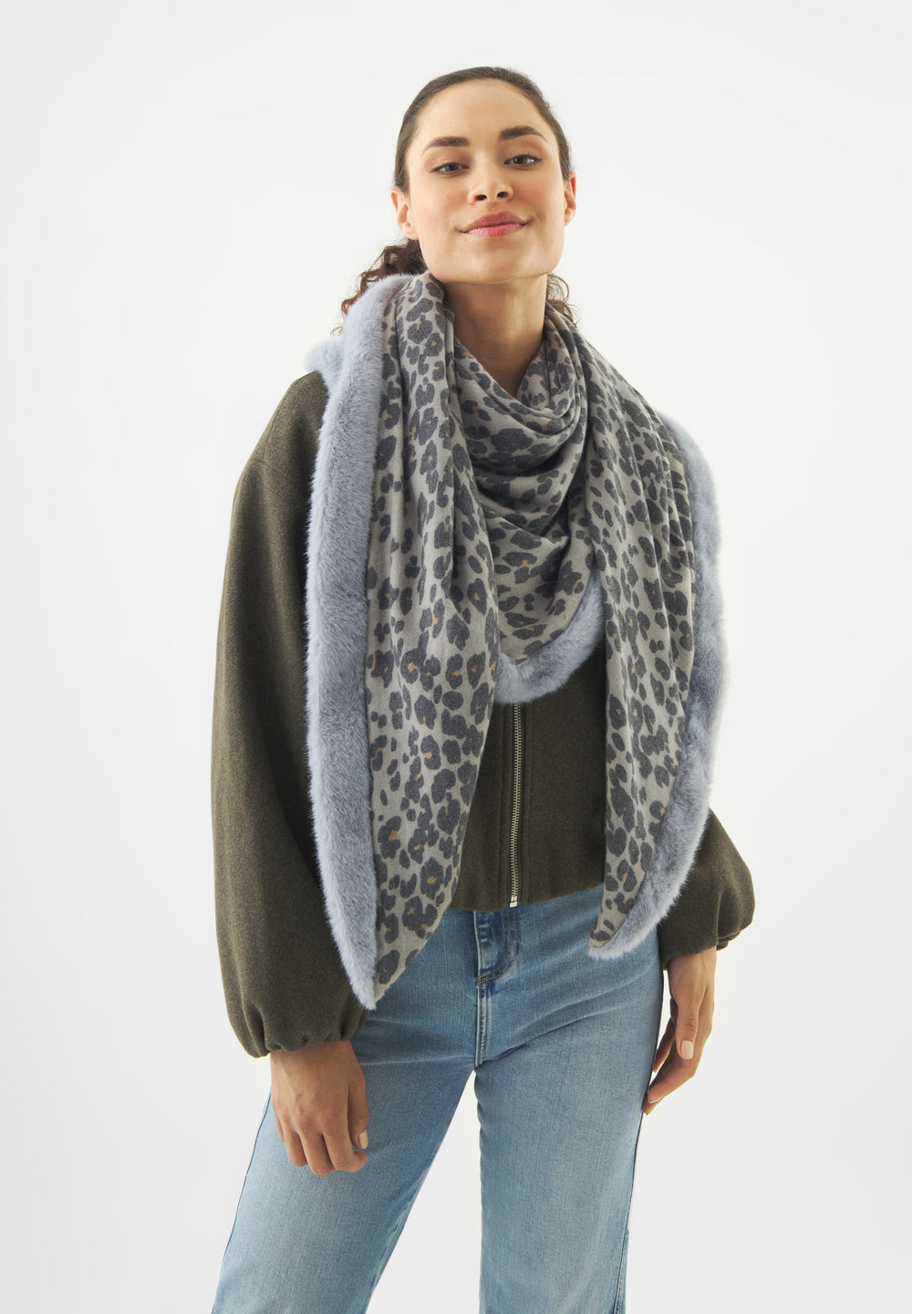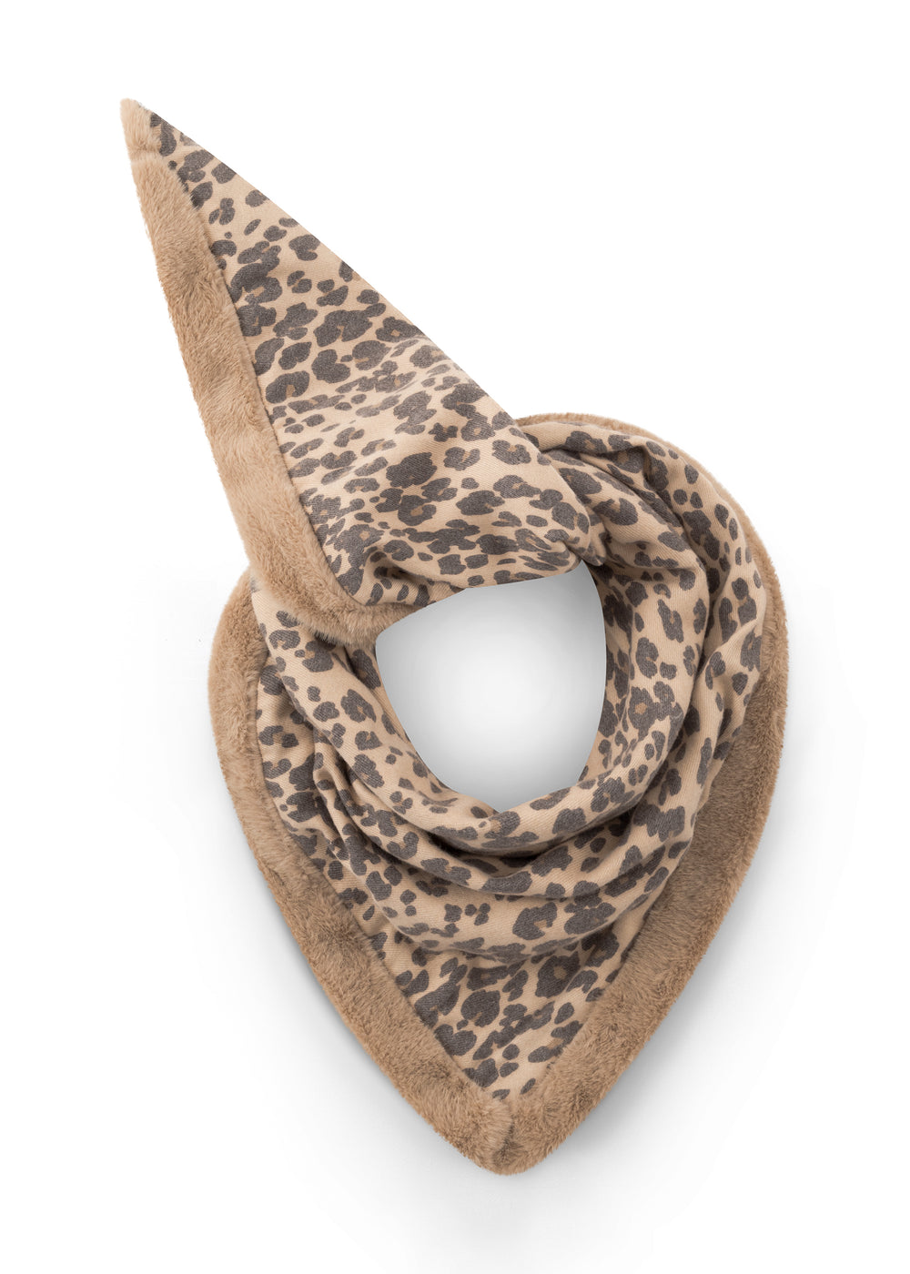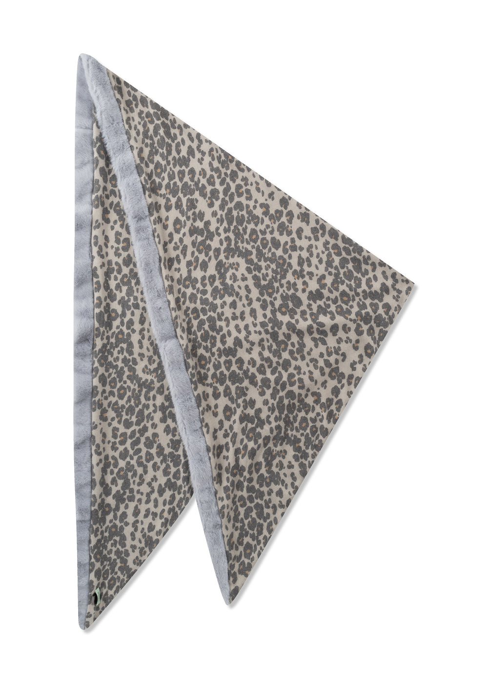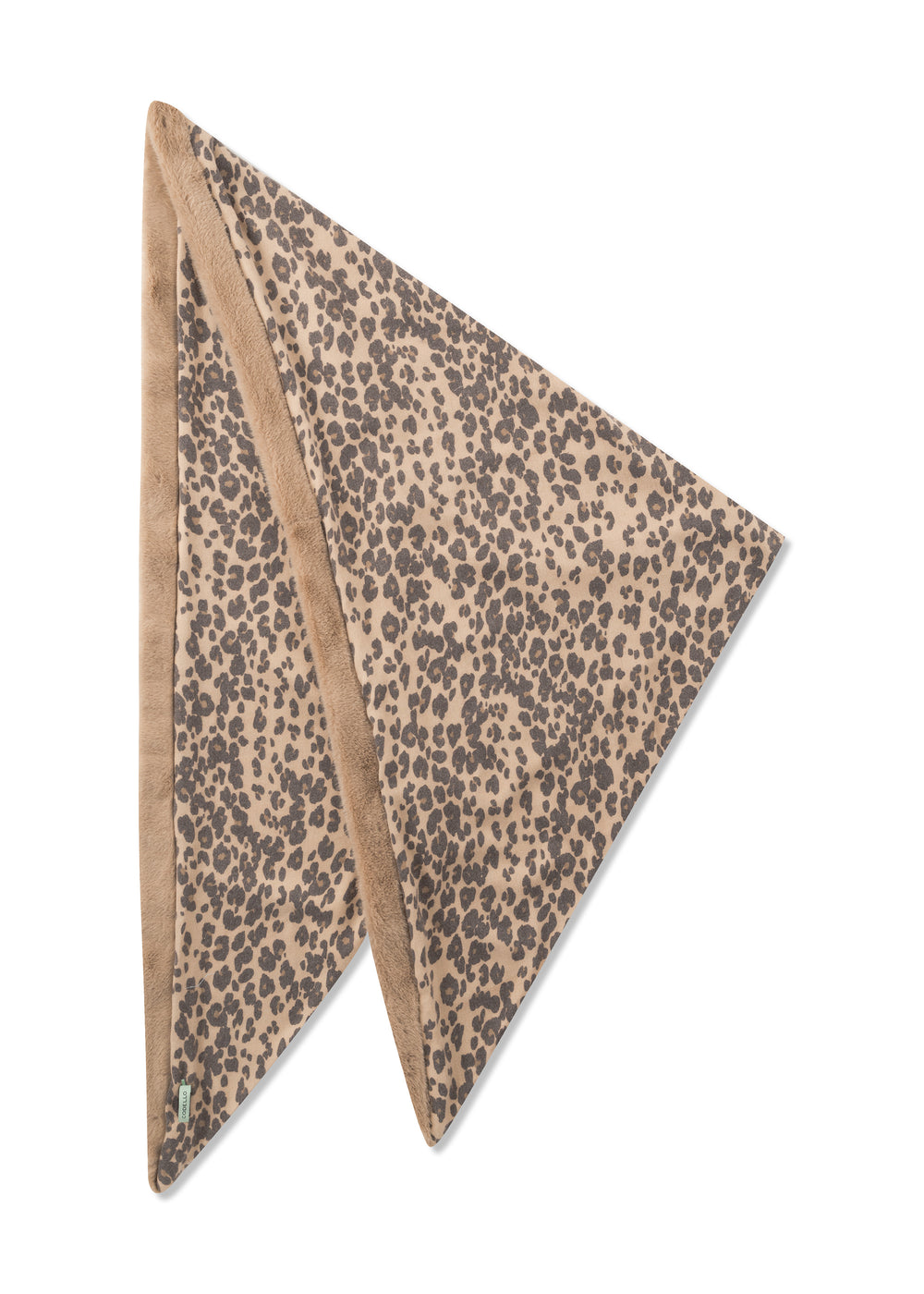 kaschmirweiches Dreieckstuch mit Teddyfellrückseite mit Leo-Muster