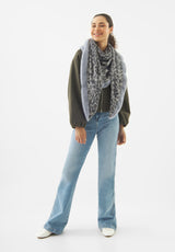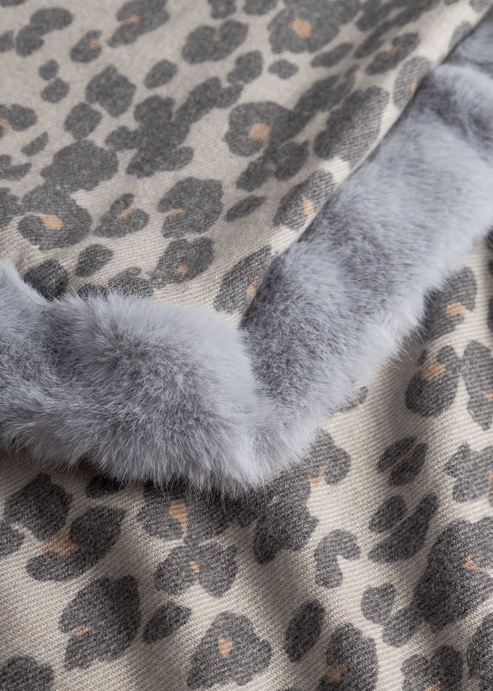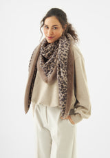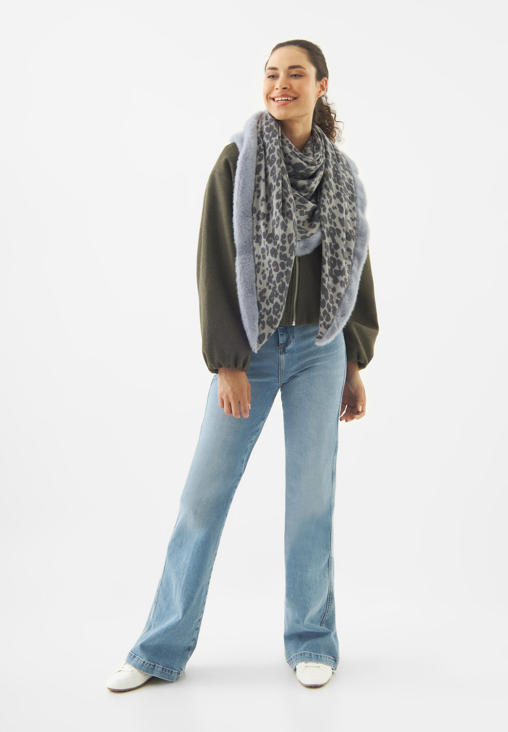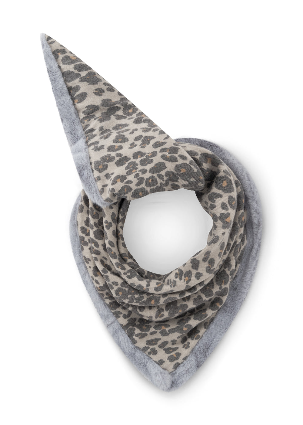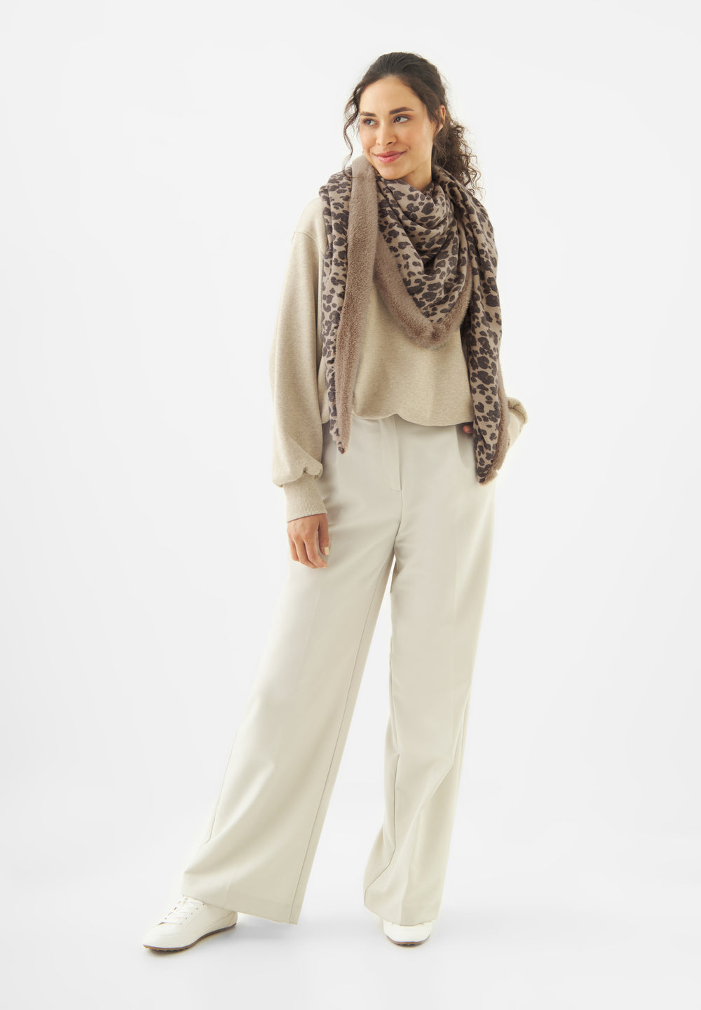 kaschmirweiches Dreieckstuch mit Teddyfellrückseite mit Leo-Muster