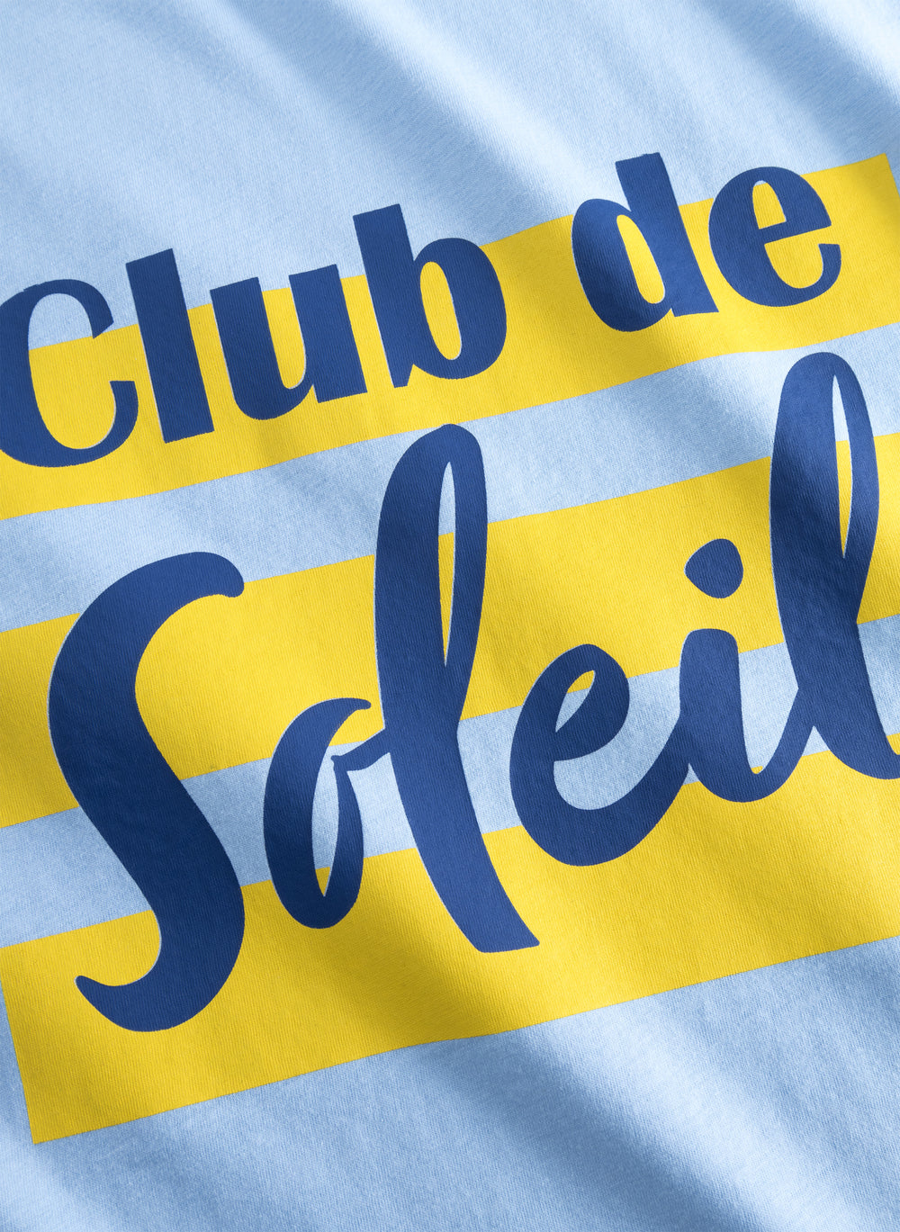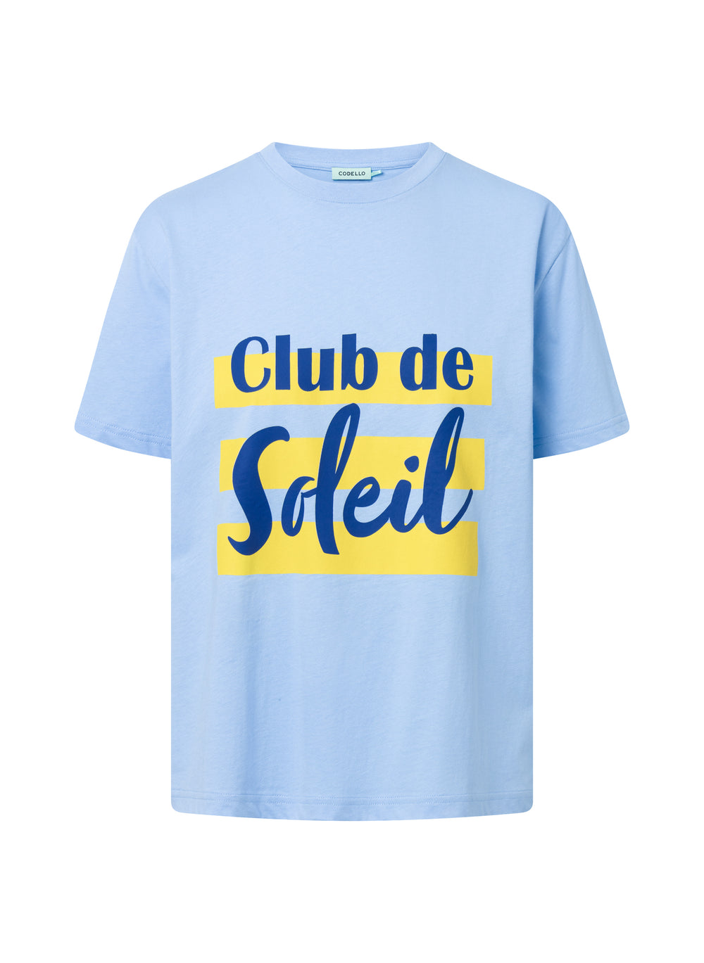 Home / Alle Produkte / T-Shirt aus Baumwolle in Hellblau mit "Club de Soleil" - Motiv
