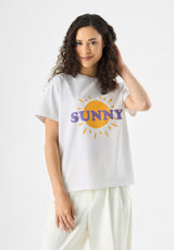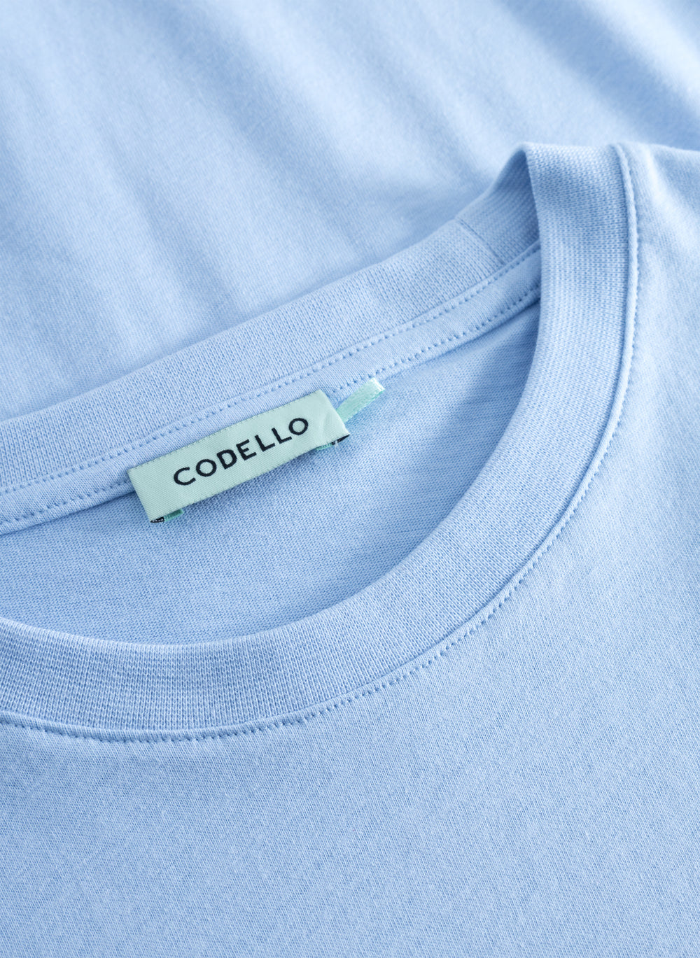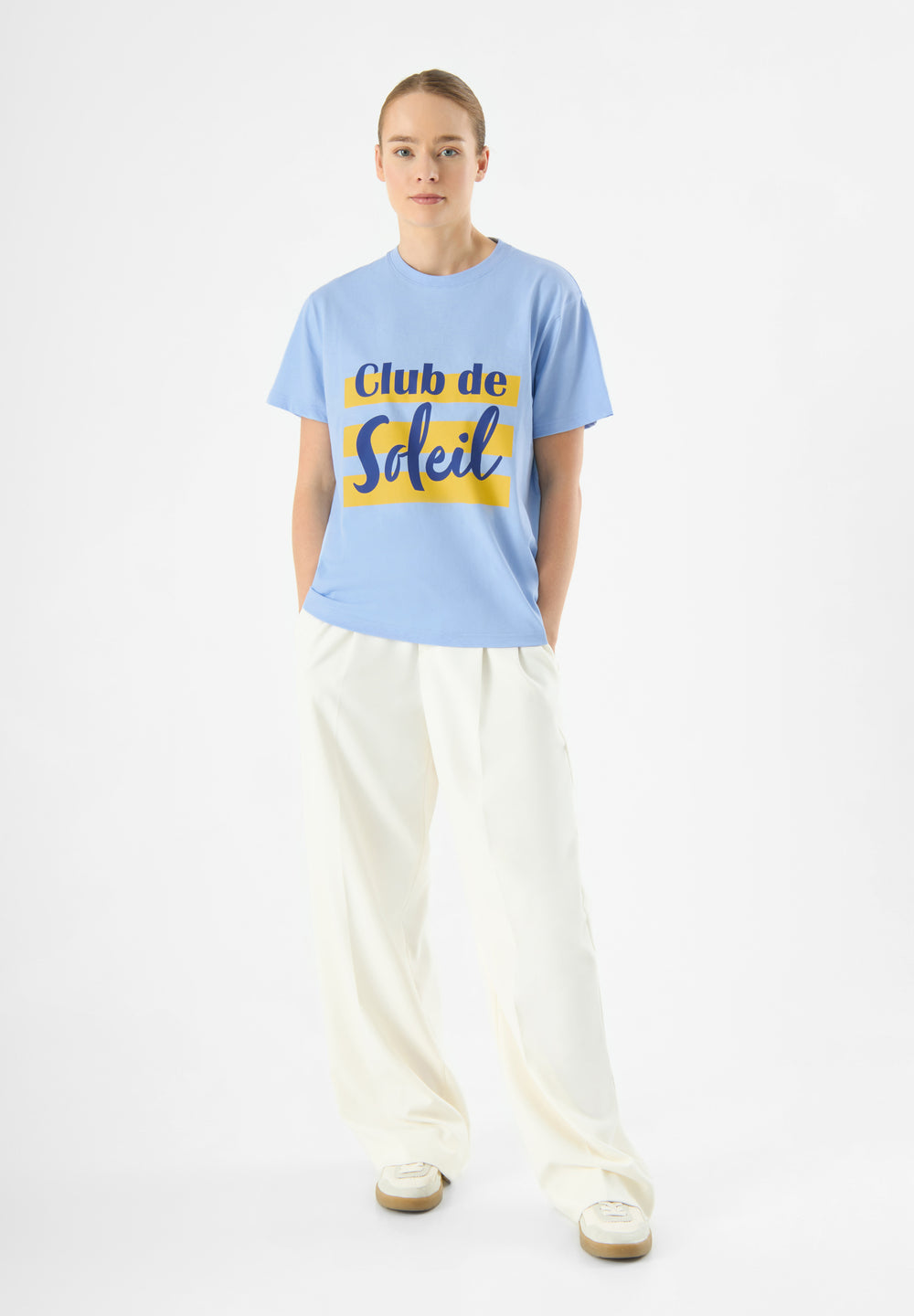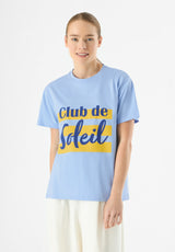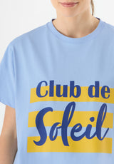 T-Shirt aus Baumwolle in Hellblau mit "Club de Soleil" - Motiv