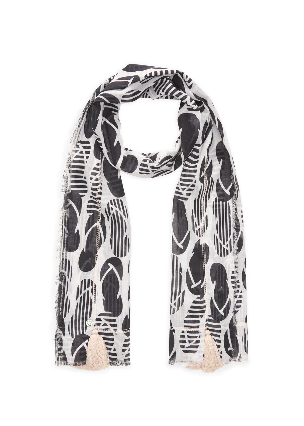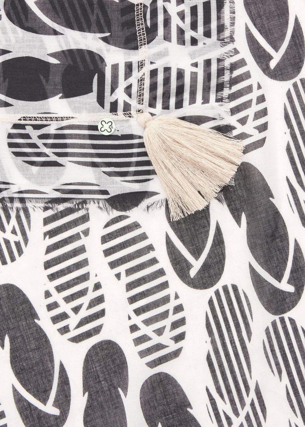 Dieser leichte Schal aus reiner Baumwolle zeigt ein Flip-Flop-Muster und wird durch eine Overlock-Dekoration ergänzt. Die luftige, angenehme Qualität sorgt für ein komfortables Tragegefühl an warmen Tagen.