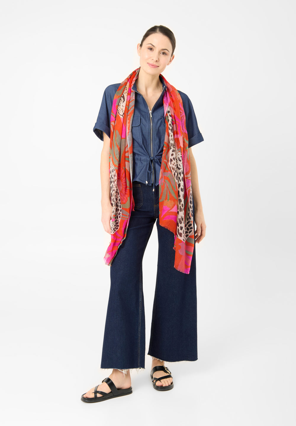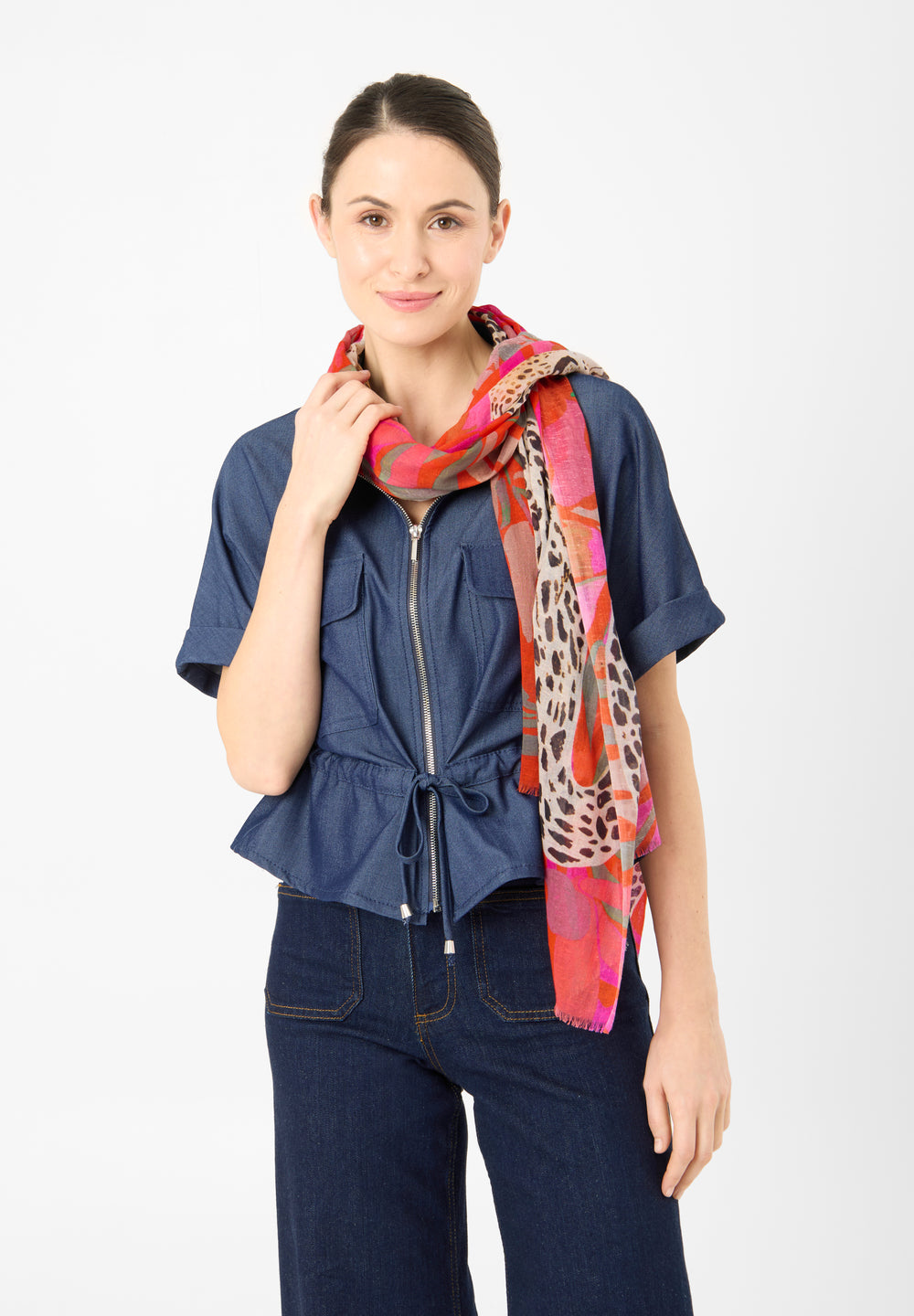 Schal aus Baumwollmix mit Leopard-Motiv