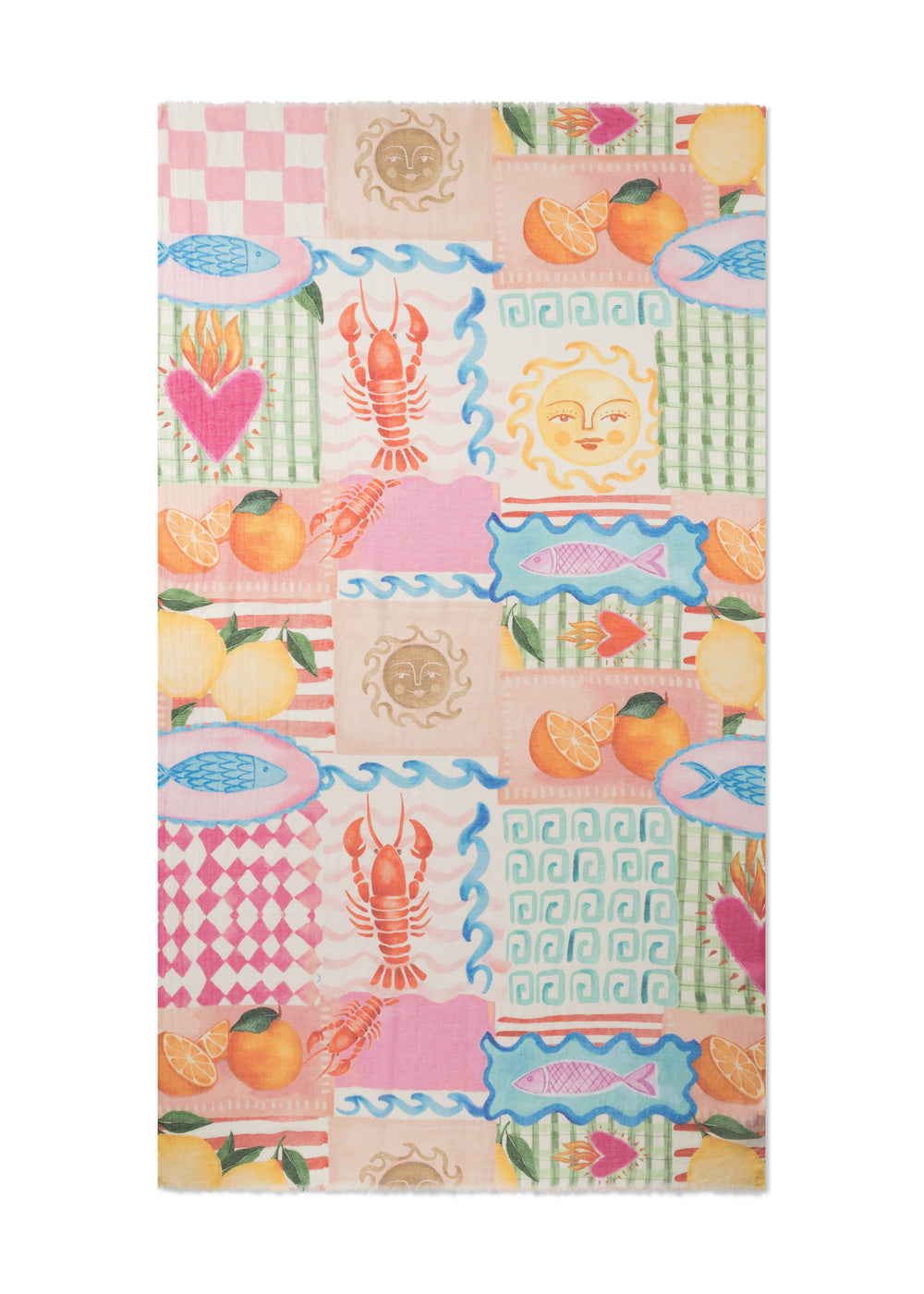 Schal aus Baumwollmix mit sommerlichem Patchwork-Muster