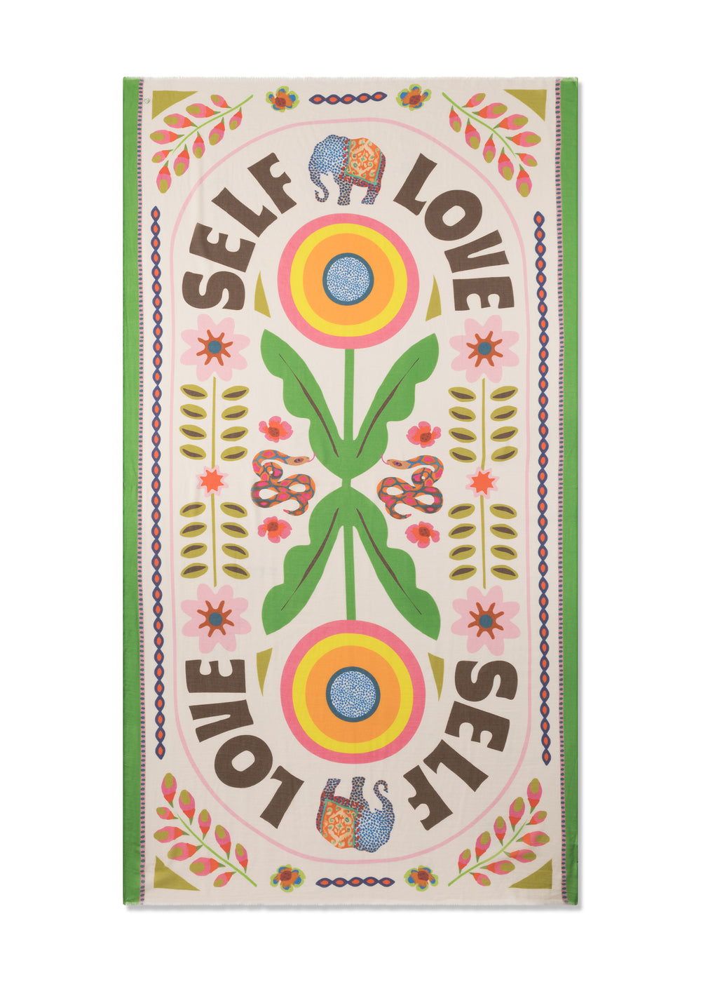 Dieser stylische Schal aus feinem Modalgarn und Baumwolle ist ein echtes Sommer-Highlight. Ob lässig über die Schulter oder als Pareo geknotet am Beach – er wird schnell zum Statement-Piece. Die leichte Qualität trägt sich angenehm, und das Muster mit SELF LOVE-Schriftzug sorgt für einen trendigen Look.