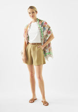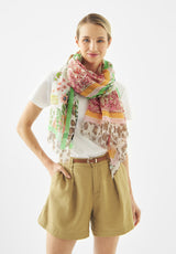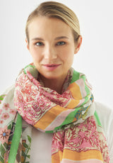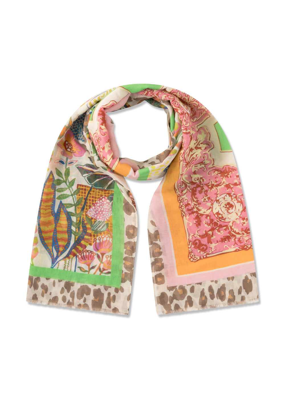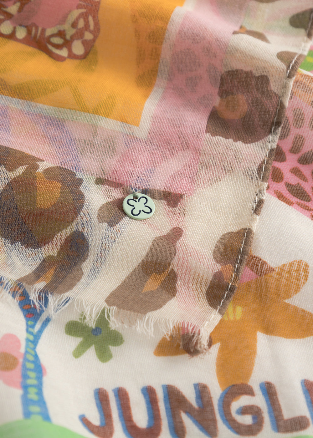 Dieser zauberhafte Schal mit buntem Mustermix versprüht pures Sommer-Feeling. Der leichte Baumwollschal trägt sich angenehm und lässt sich vielseitig stylen. Wer ihn nicht um den Hals tragen möchte, knotet ihn einfach als Pareo – ein echter Urlaubs-Allrounder.