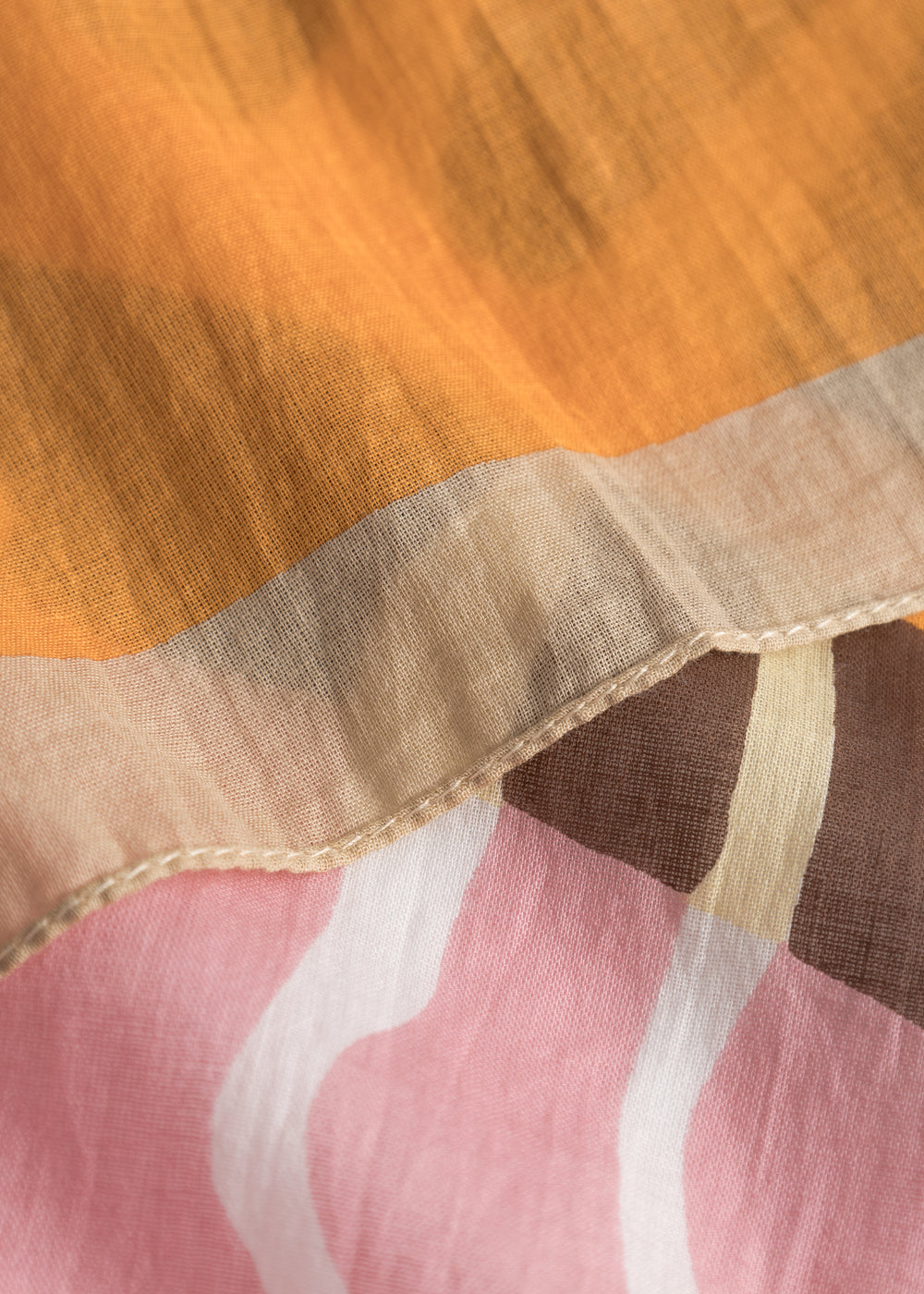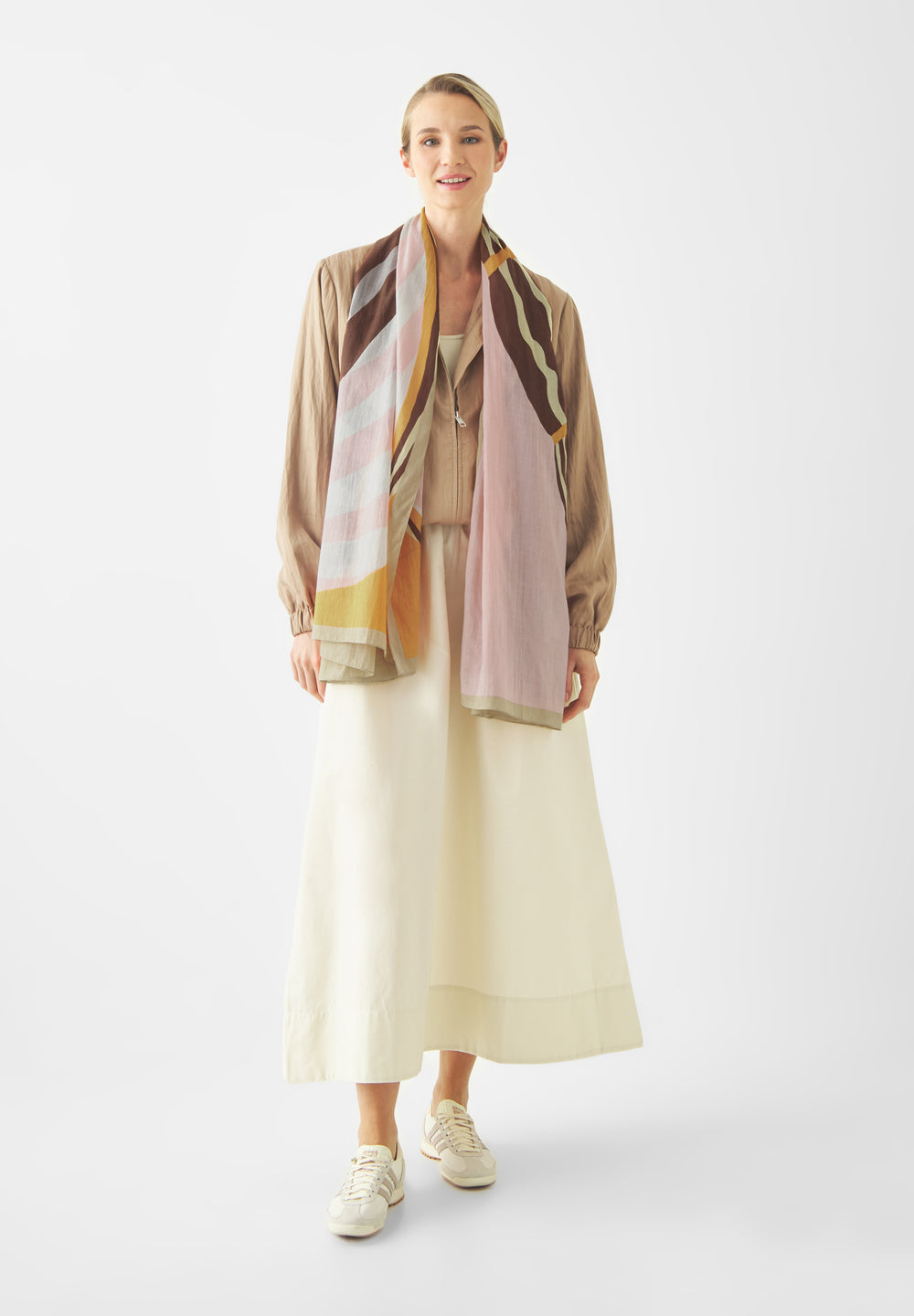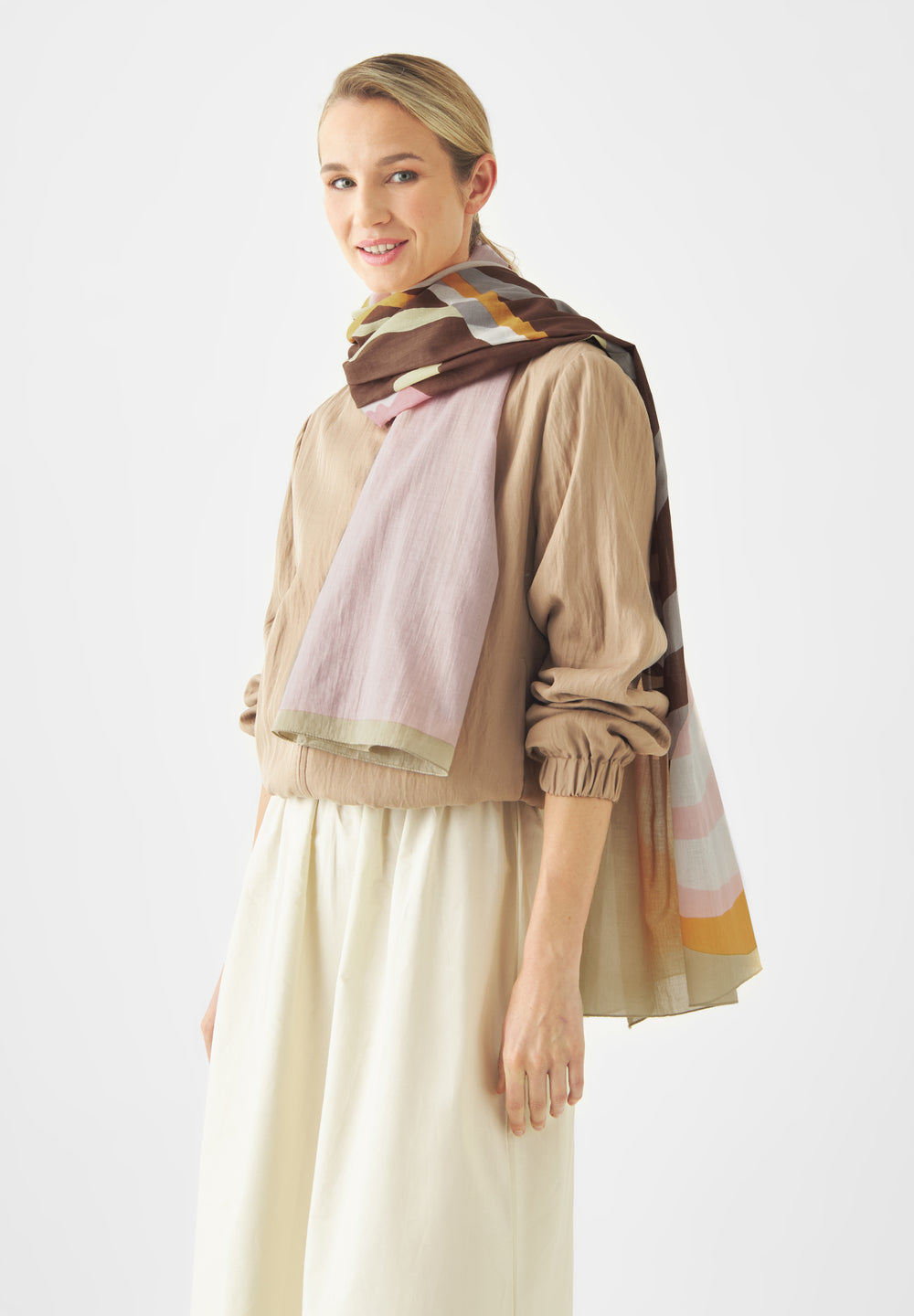Dieser angenehm luftige Schal aus feiner Bio-Baumwolle dreht jedes Outfit auf Wow. Mit XL-Muschel-Motiv in warmen Naturtönen inszeniert passt er zu allen Unis und sorgt für den perfekten Sommer-Touch. Unsere Bio-Baumwolle ist GOTS-zertifiziert. Ihr Anbau erfolgt durch Kleinbetriebe und verbraucht weniger Wasser. Auch der Einsatz von Pestiziden wird weitestgehend ausgeschlossen.