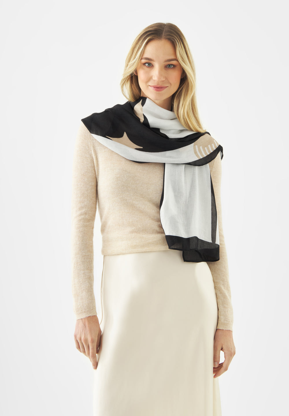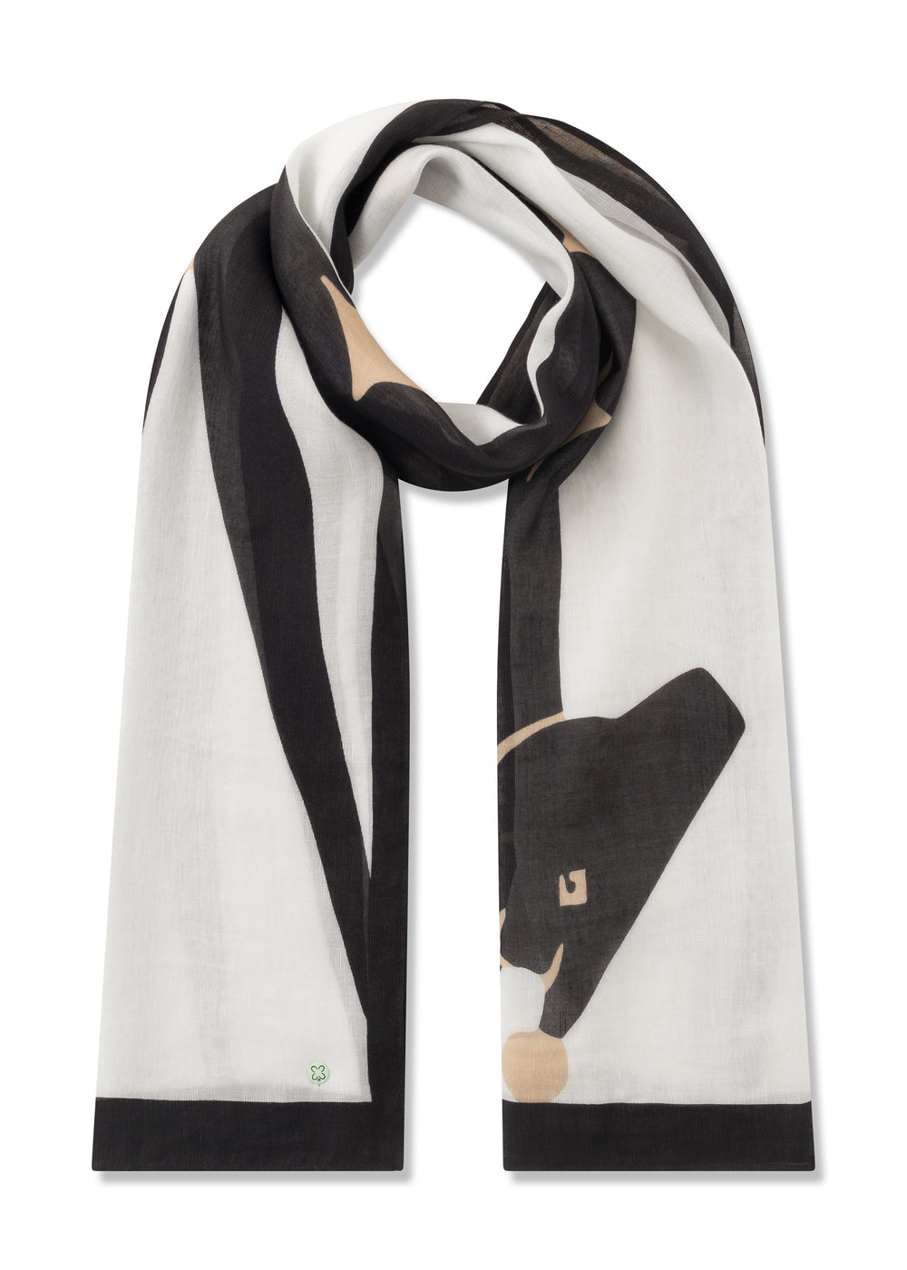 Dieser exklusive Schal begeistert mit einem liebevollen Giraffenmotiv in schwarz-beige auf weißem Fond. Die feine Mischung aus Viskose und sommerlichem Leinen lässt das Muster besonders schön wirken und macht den Schal zum stilvollen Eyecatcher zu Sommerkleidern und leichten Blusen.