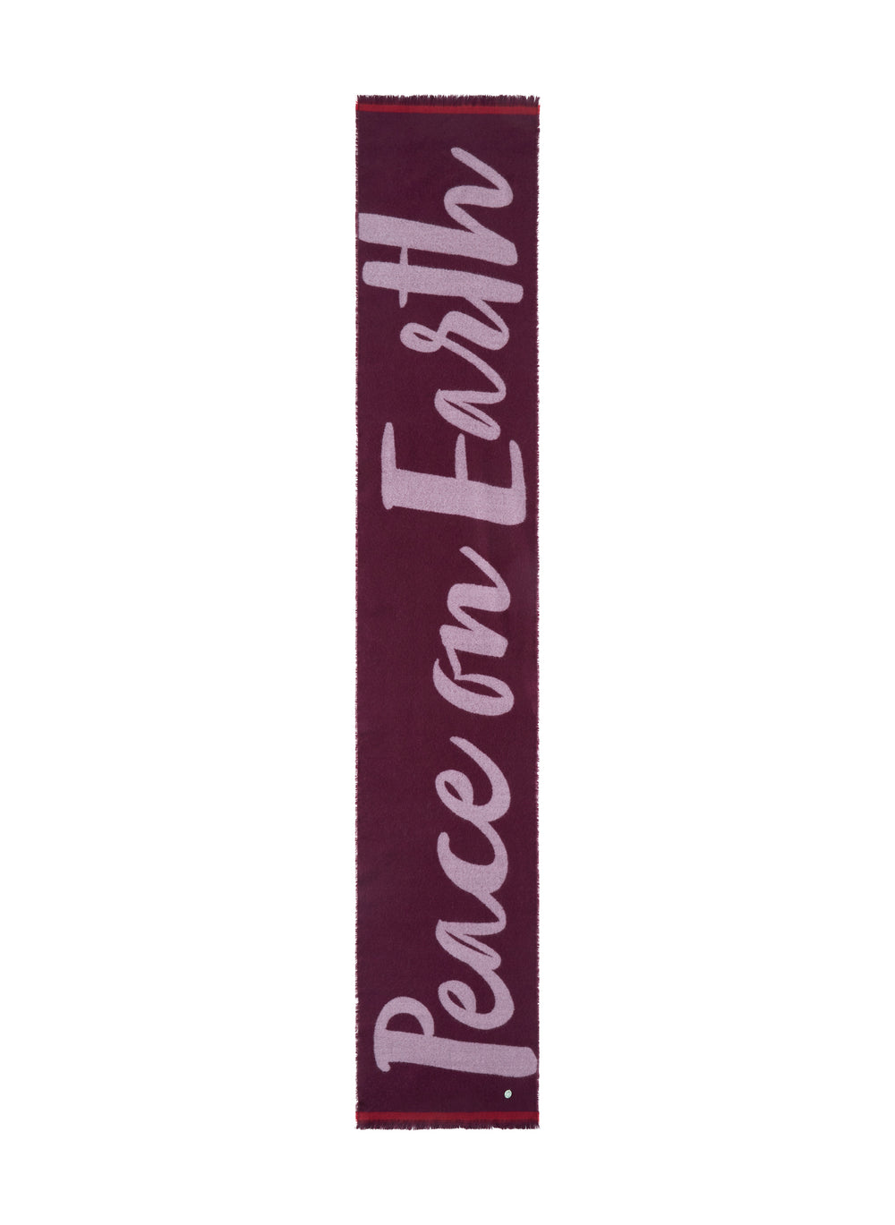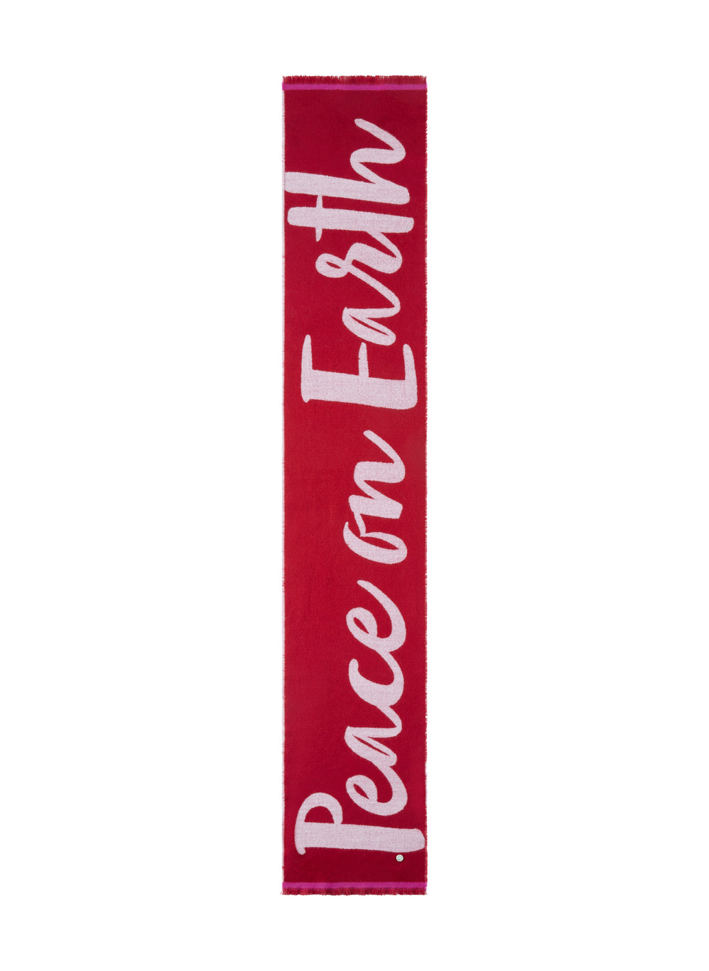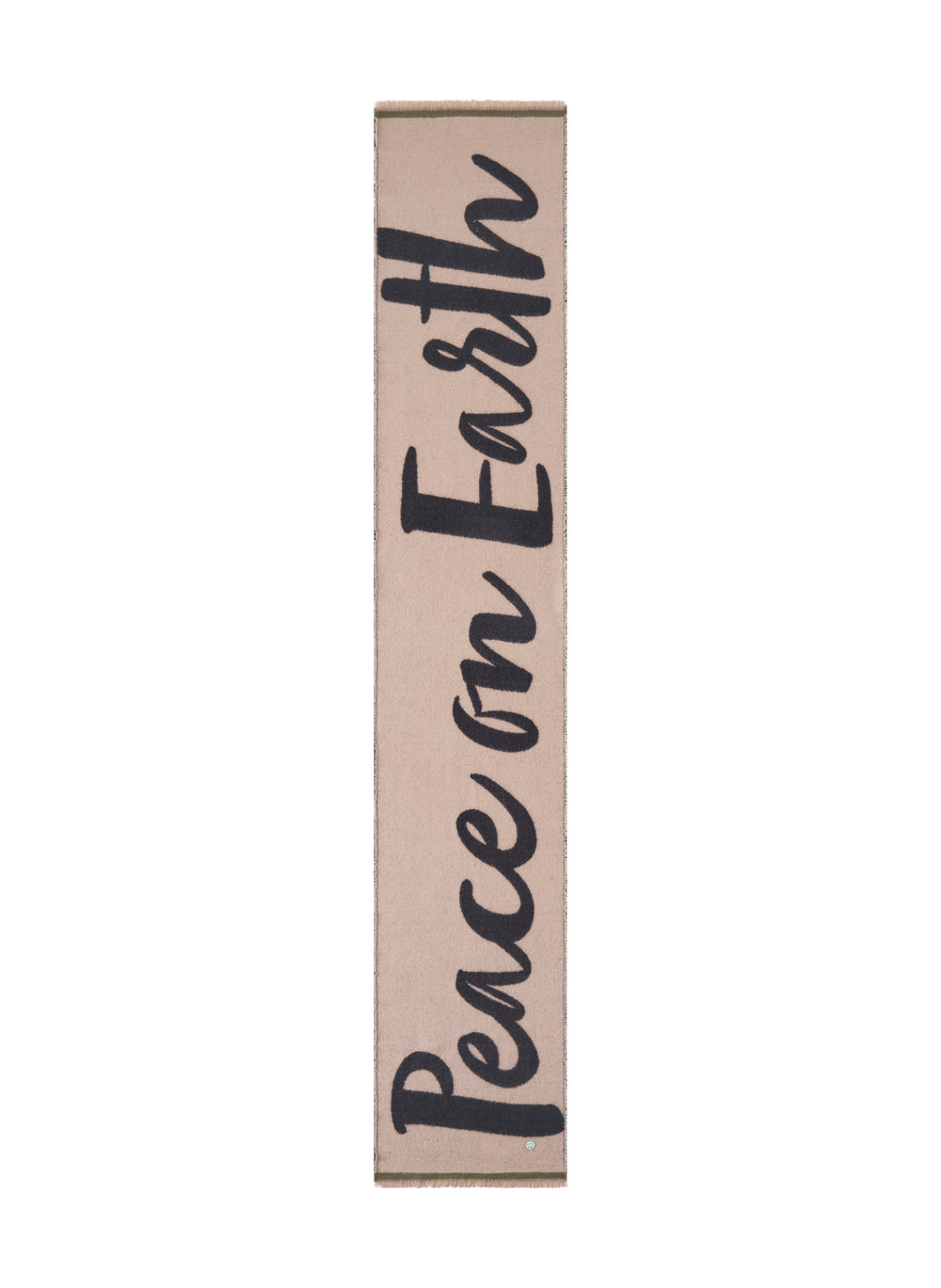 Dieser schmale Jacquard-Schal setzt mit dem großflächigen „Peace on Earth“-Schriftzug ein klares Statement. Die hochwertige Verarbeitung und das doppelseitige Design machen ihn zu einem ausdrucksstarken Accessoire mit moderner Wirkung.