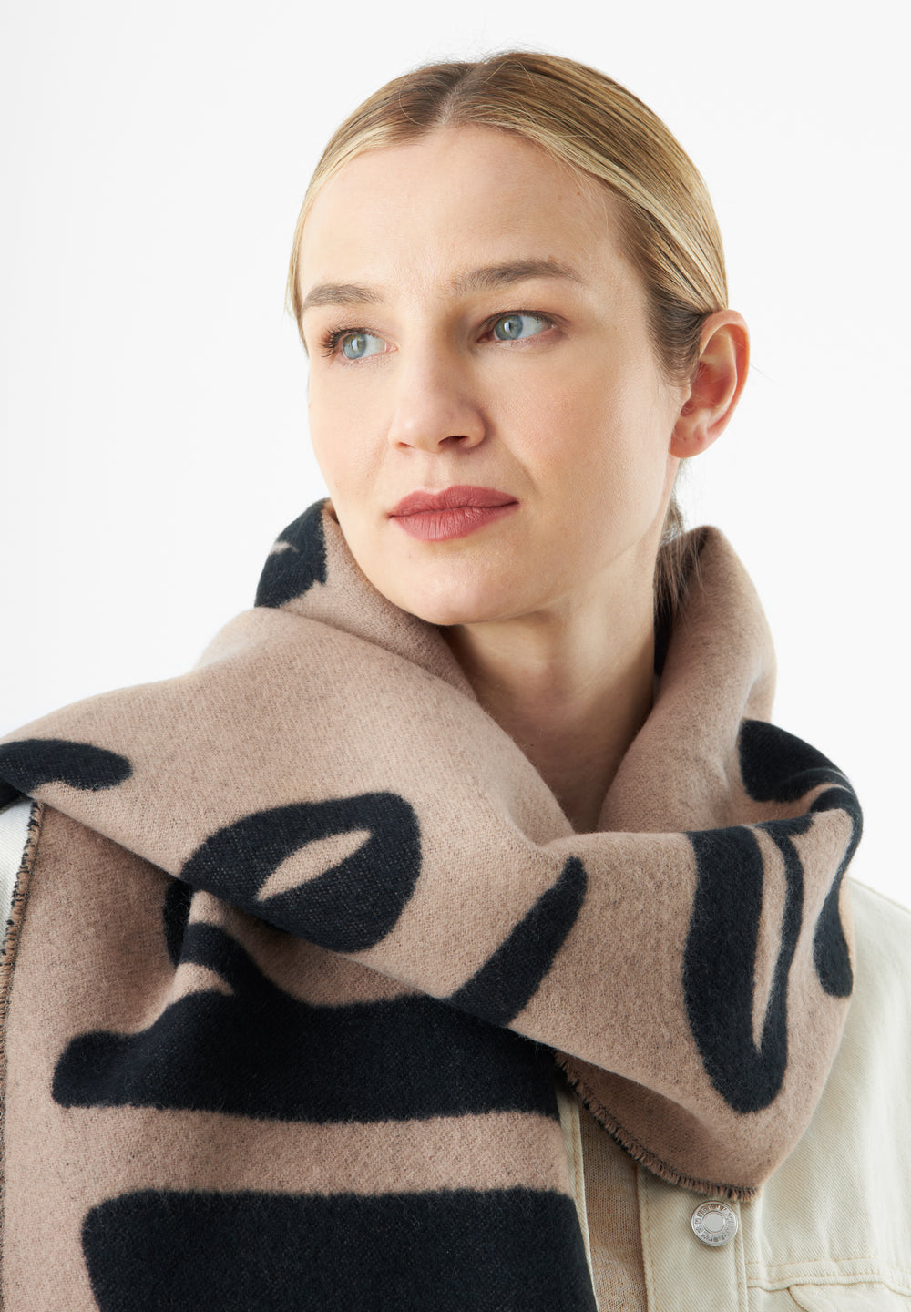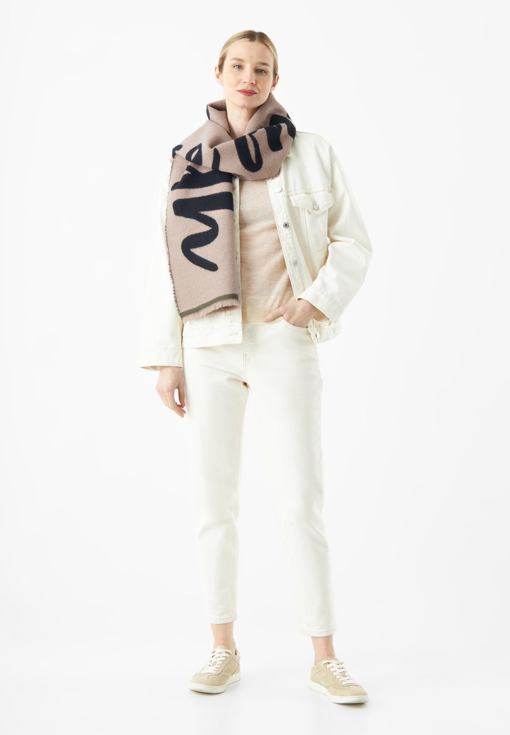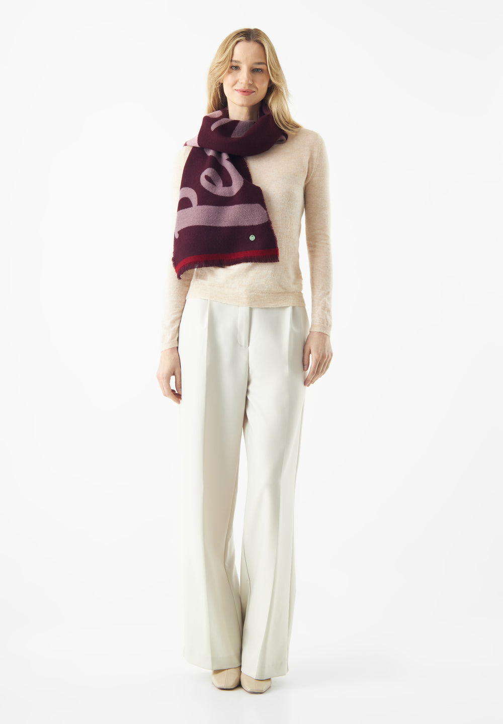 Dieser schmale Jacquard-Schal setzt mit dem großflächigen „Peace on Earth“-Schriftzug ein klares Statement. Die hochwertige Verarbeitung und das doppelseitige Design machen ihn zu einem ausdrucksstarken Accessoire mit moderner Wirkung.