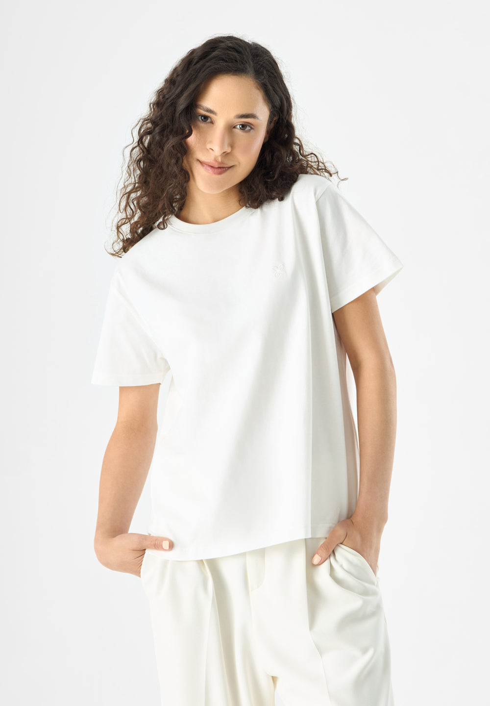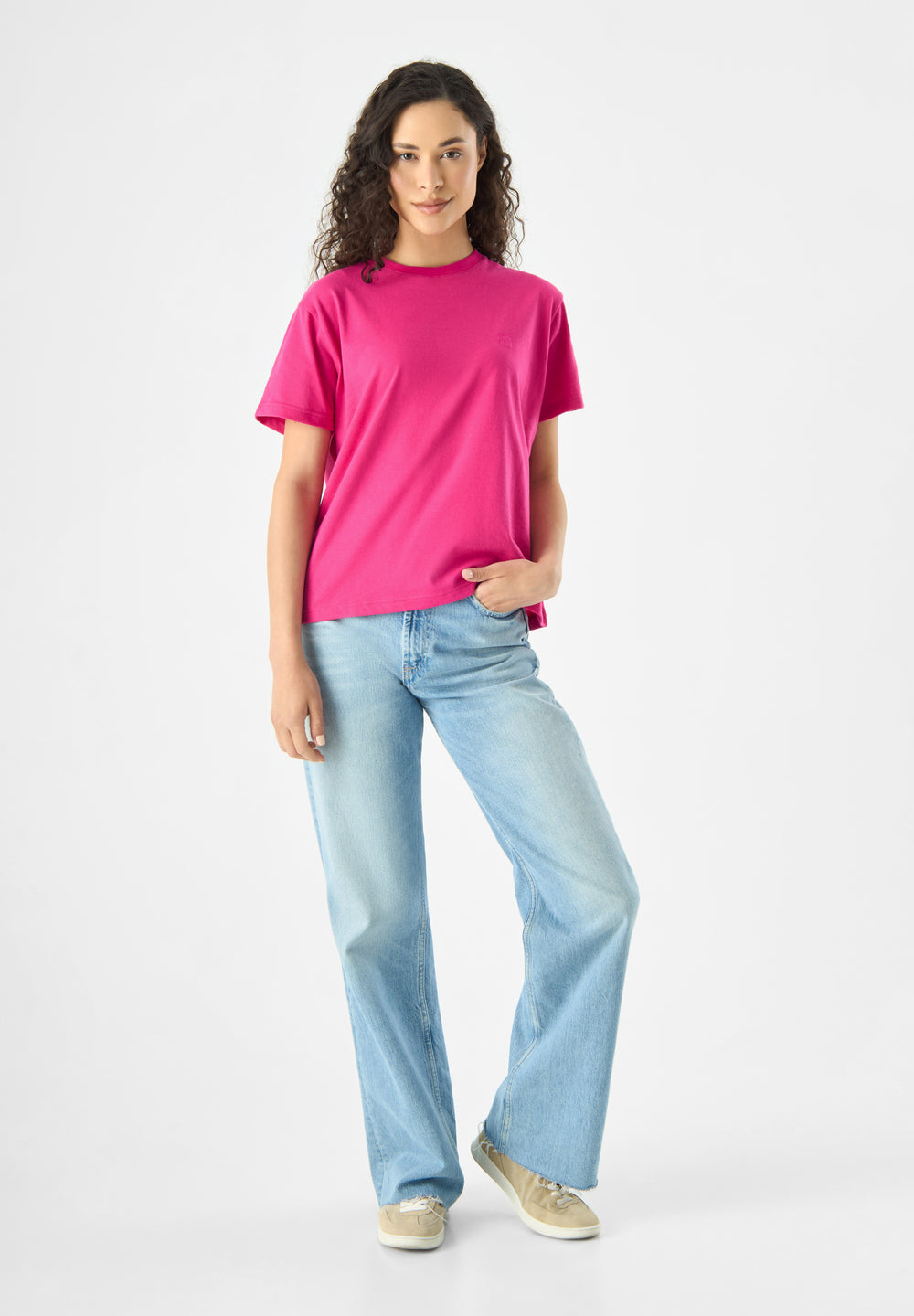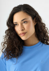 Frisch und leicht: Dieses Damen-T-Shirt in zartem Hellblau aus hochwertiger Baumwolle begeistert mit softem Griff und entspannter Passform. Ein traumhaftes Basic für lässige Alltagslooks oder luftige Layering-Styles.