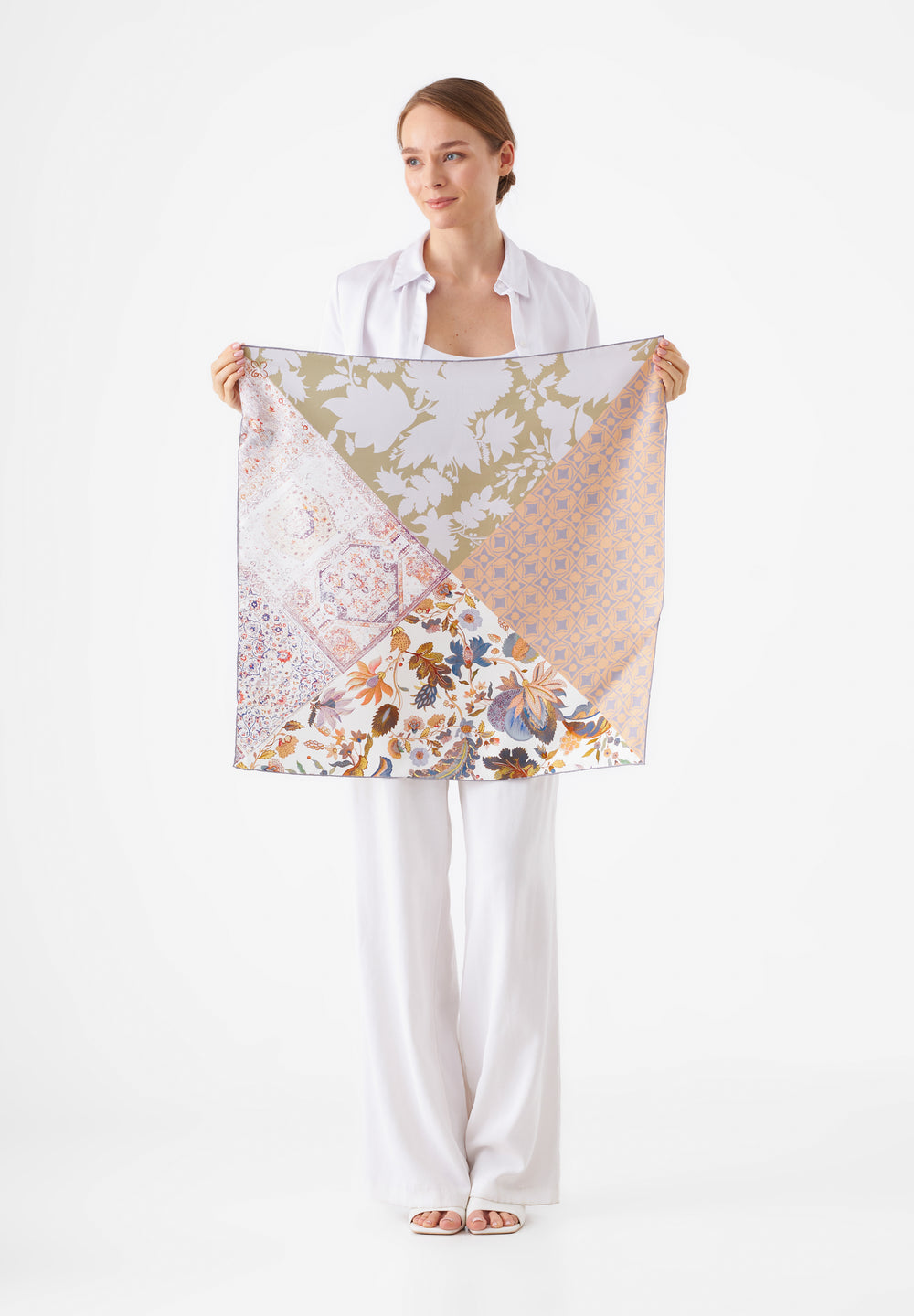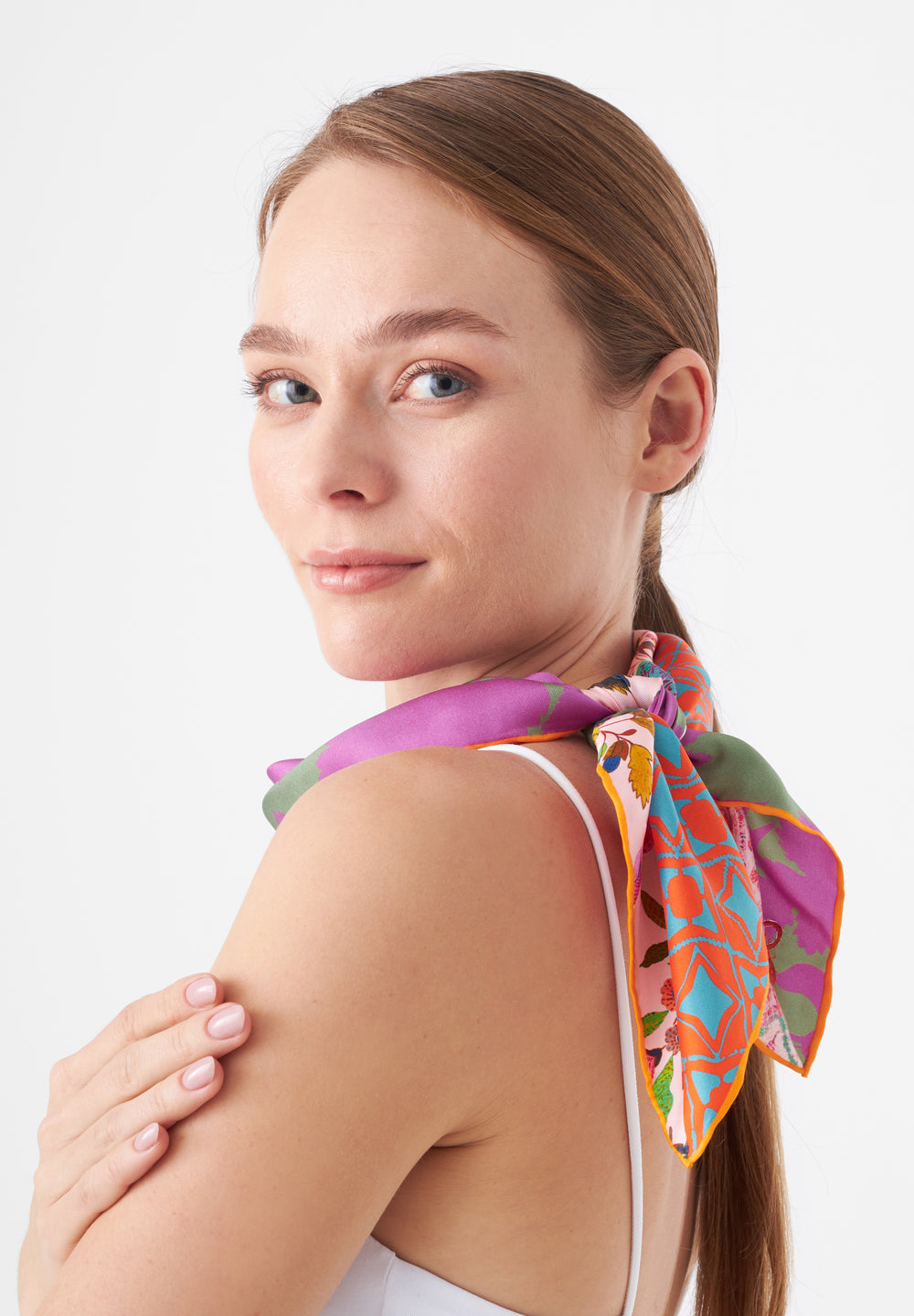 Dieses edle Mini-Carré gefällt uns mit seinem sommerlichen Blumenmuster auch ins Haar gebunden oder lässig an die Jeans geknotet sehr gut. Das edle Nickituch aus #1 Pure Silk ist im vergrößerten Trend-Format designt. Es wurde in einer ausgewählten, chinesischen Seidenmanufaktur, mit der uns eine langjährige Partnerschaft verbindet, aus wertvoller Seide gefertigt. Das beidseitig bedruckte Seidentuch besticht durch seinen angenehm kühlen und geschmeidig weichen Griff, sein luxuriöses Tragegefühl und seine einzigartige Farbbrillanz.