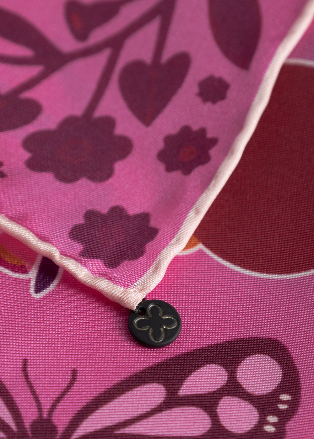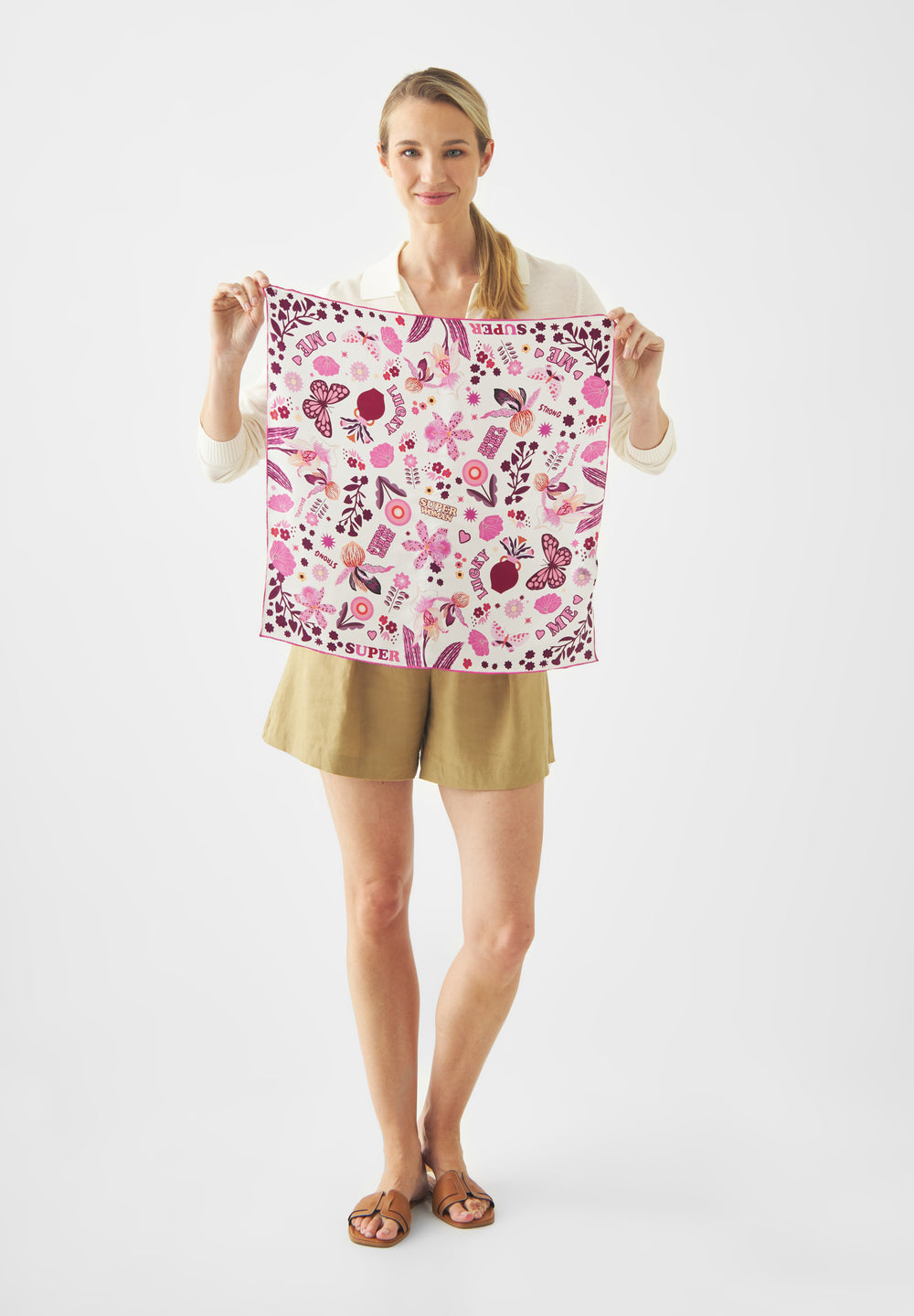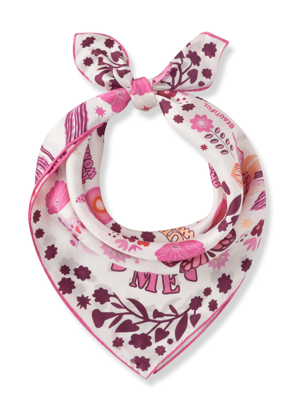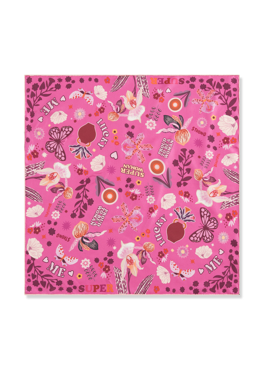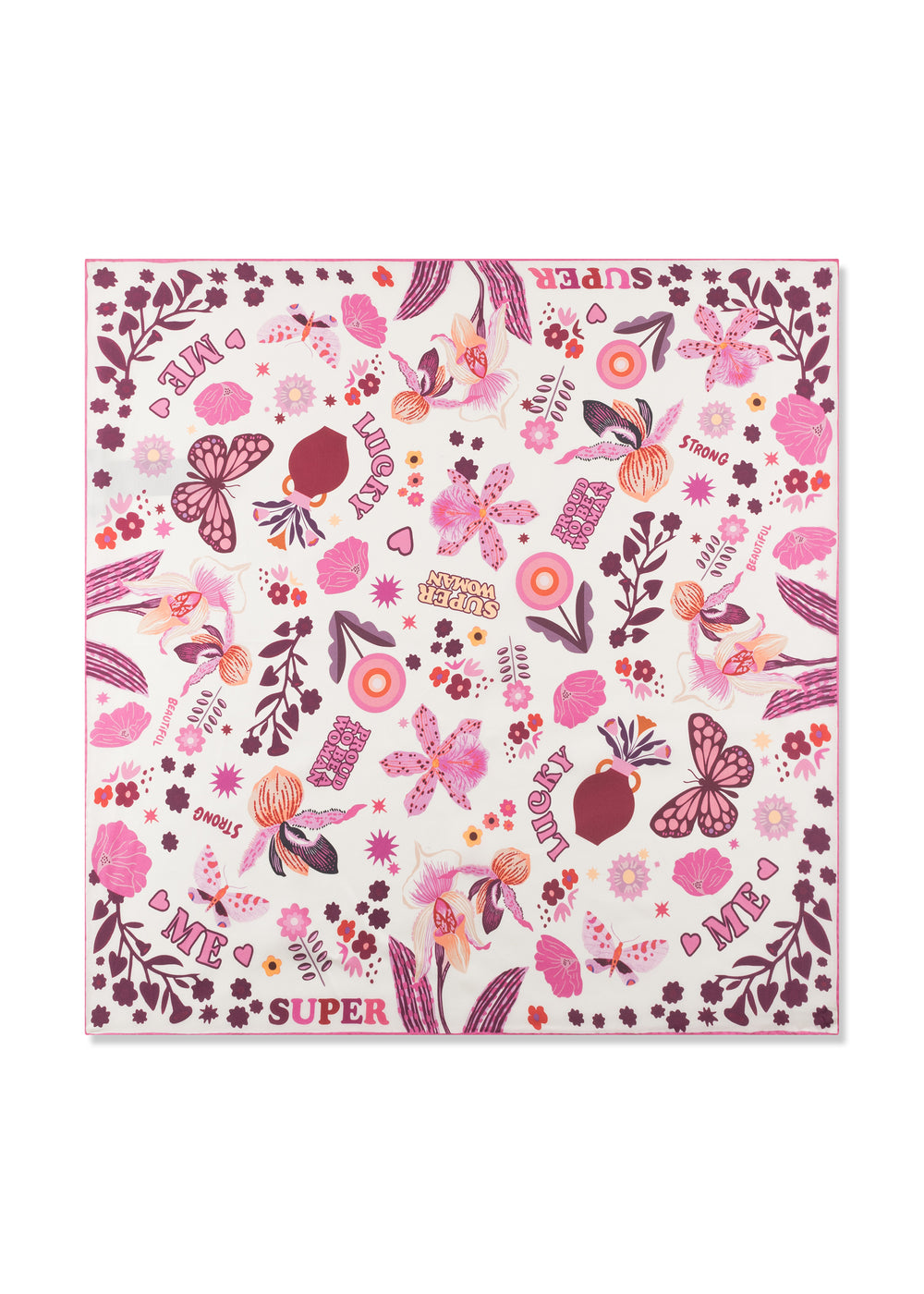 Das Nickituch mit SUPERWOMAN-Motiven verleiht jedem Outfit ein edles Finish. Der Print verbindet zarte florale Designs mit kraftvollen Typografien und schafft so einen modernen, Look, der Power und Eleganz mühelos vereint.Vielseitig tragbar als Armband, Taschen-Detail oder klassisch um den Hals, überzeugt das Tuch aus feinster Seide mit kühlem, geschmeidigem Griff, luxuriösem Tragegefühl und brillanten Farben.