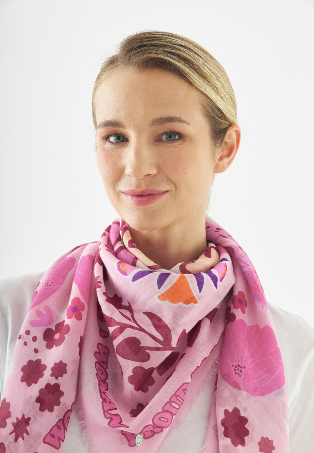 Accessoires verleihen jedem Look das gewisse Etwas. Dieses Tuch aus luftiger Baumwolle wird mit charmanten Motiven und „SUPER WOMAN“-Schriftzug zum modischen Highlight. Die Farben sind warm und energiegeladen – mit rosigen Tönen und tiefen beerigen Nuancen.