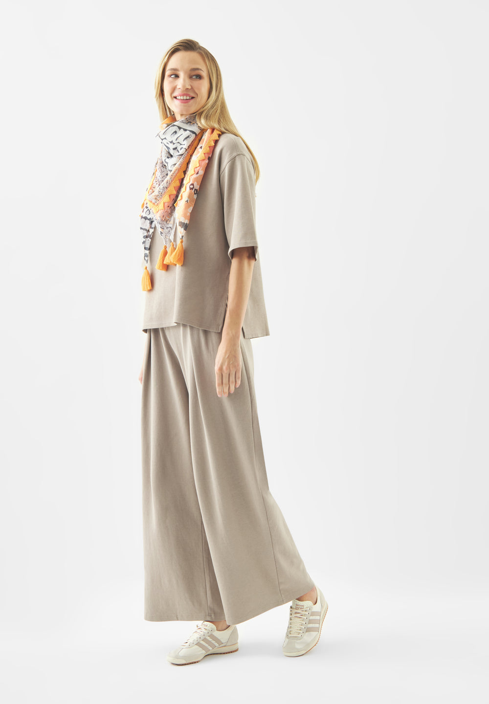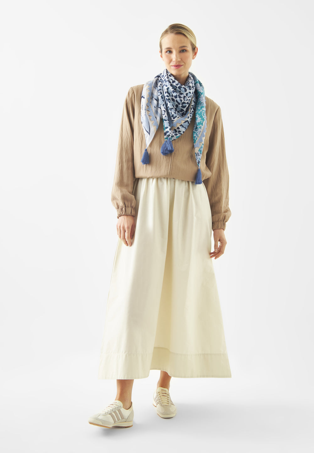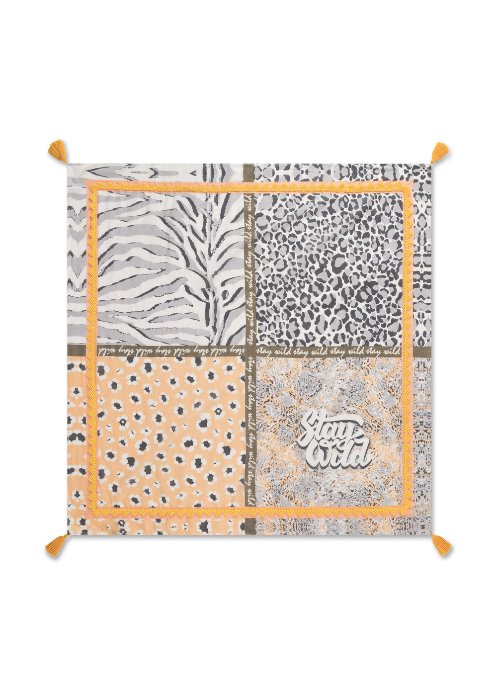 Dieses luftige Tuch aus feiner Bio-Baumwolle setzt mit Animal-Prints und STAY WILD-Schriftzug starke Akzente. Es passt perfekt zu schlichten Looks und bringt sommerliche Leichtigkeit ins Outfit. Die GOTS-zertifizierte Bio-Baumwolle stammt aus wassersparendem Anbau und steht für einen bewussten, nachhaltigen Lebensstil.