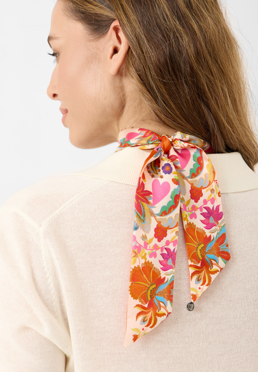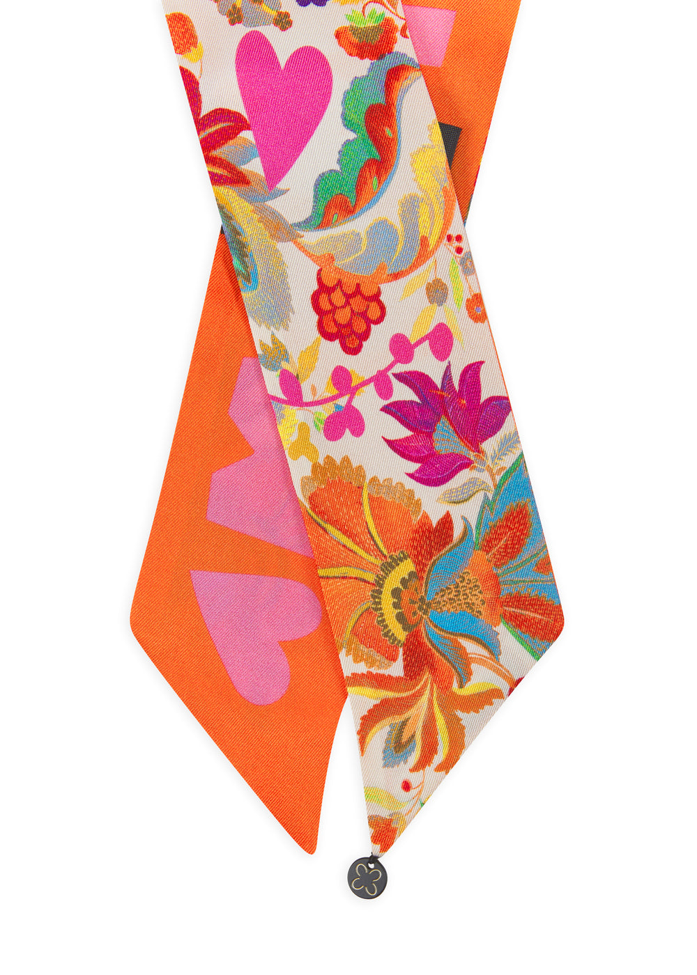 Twilly aus Seide mit Blumenmuster und Schriftzug