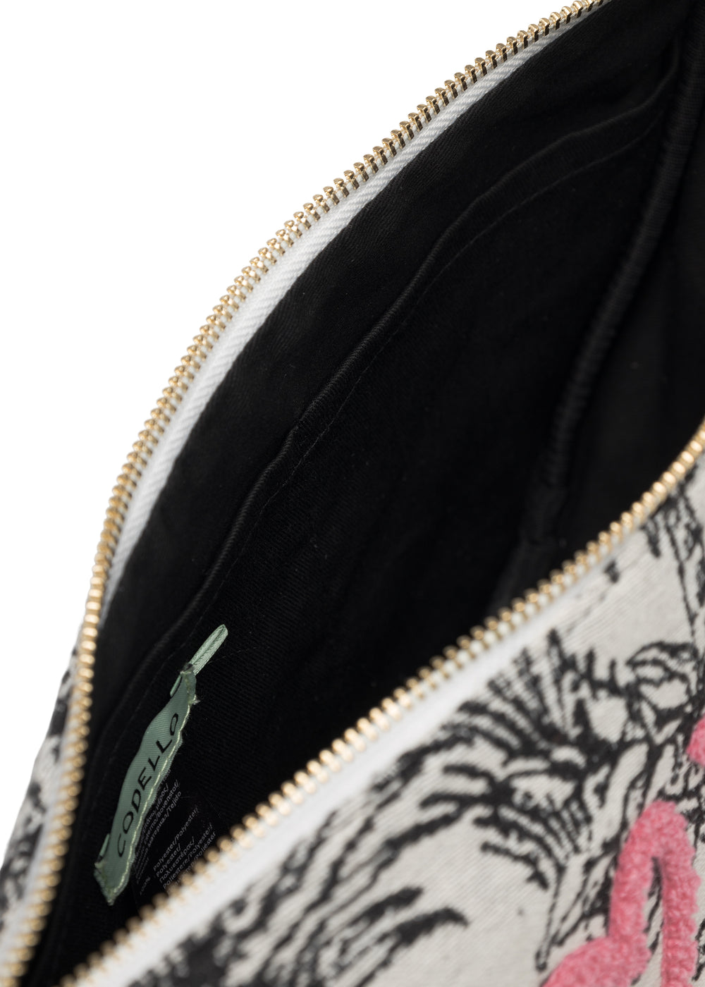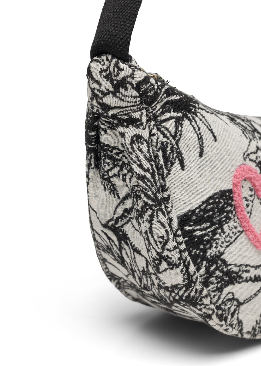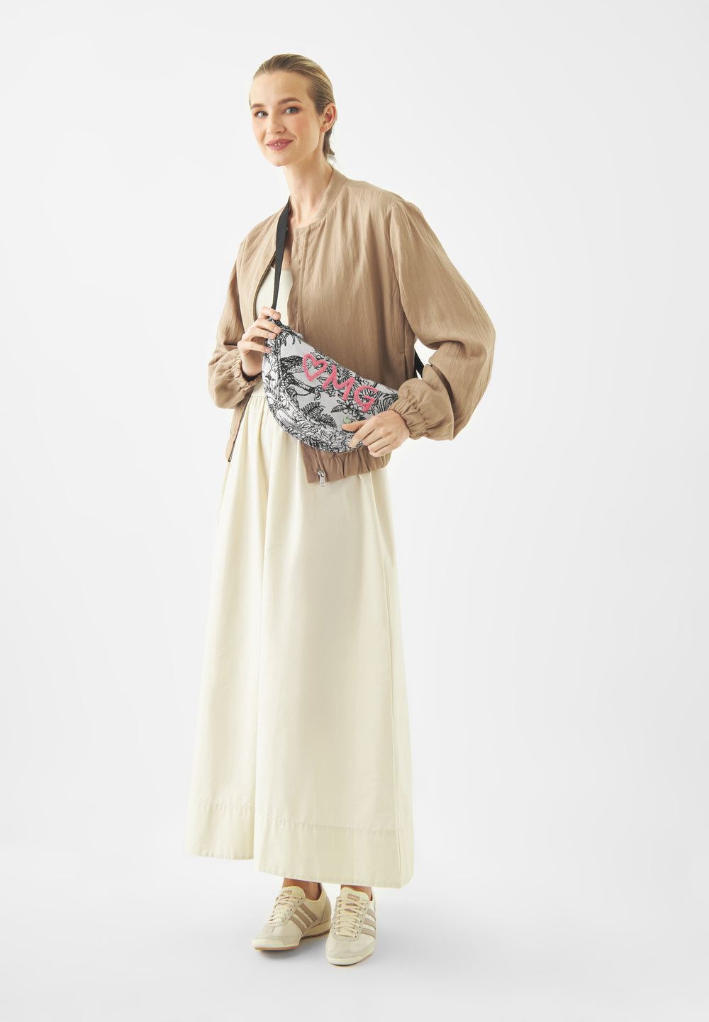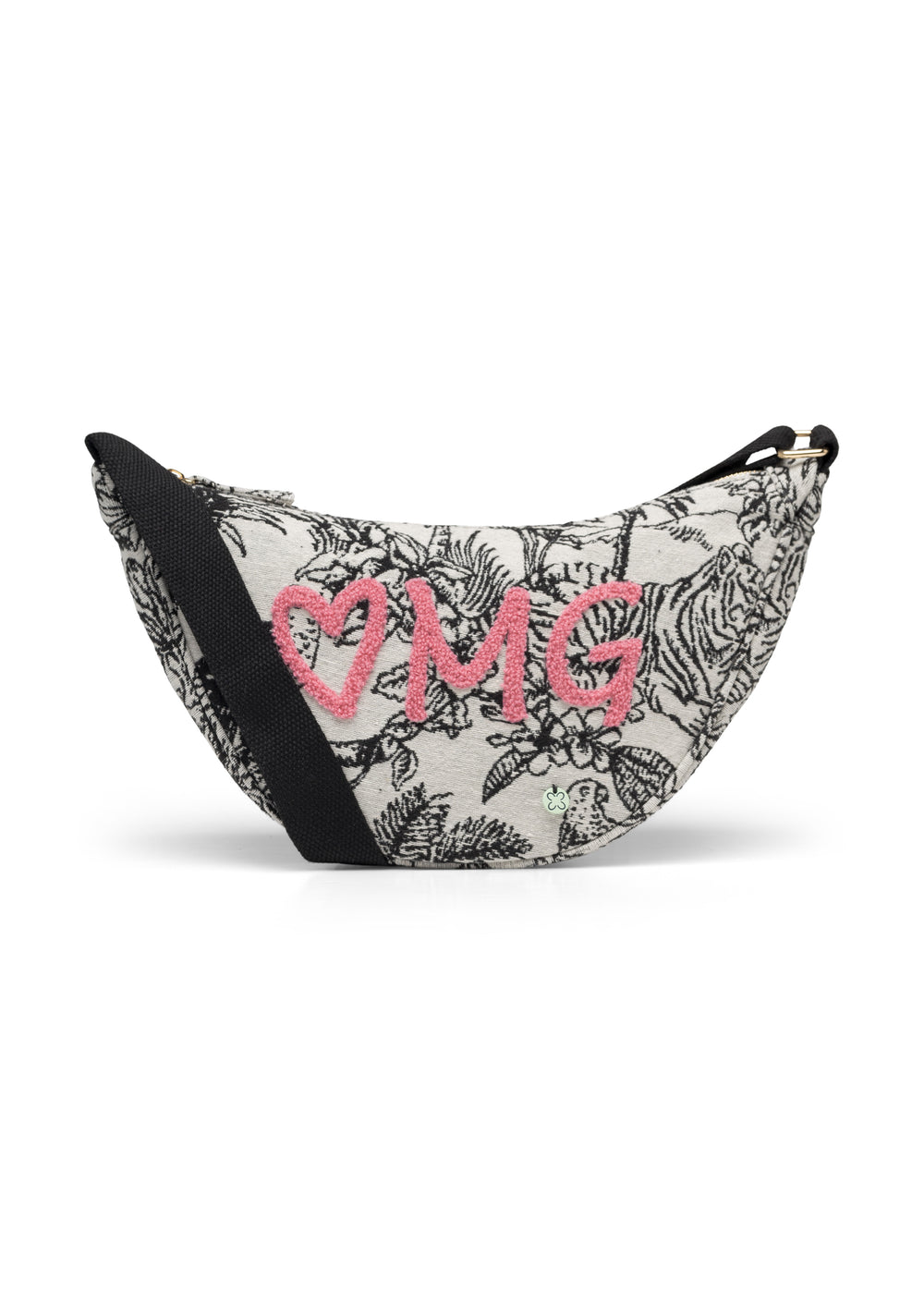 Diese stylische Crossbody Bag in Offwhite-Black verbindet modernes Dschungelmuster mit einer charmanten pinken OMG-Stickerei in Teddy-Optik. Das strukturierte Material sorgt für hochwertige Haptik, Formstabilität und Langlebigkeit. Mit verstellbarem Schulterriemen ist die Umhängetasche der ideale Begleiter für City, Freizeit und Alltag.