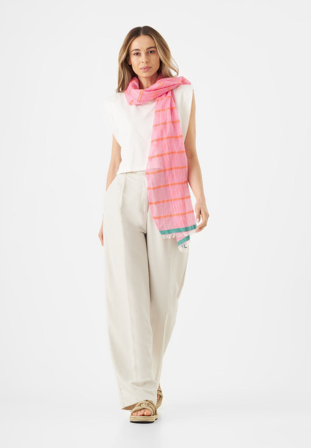 Leichter Schal aus reiner Baumwolle mit gewebten Streifen