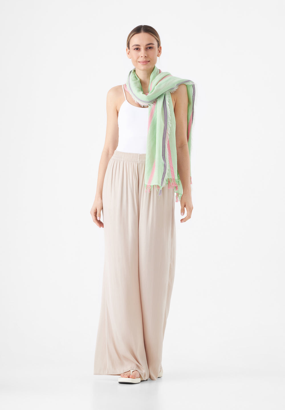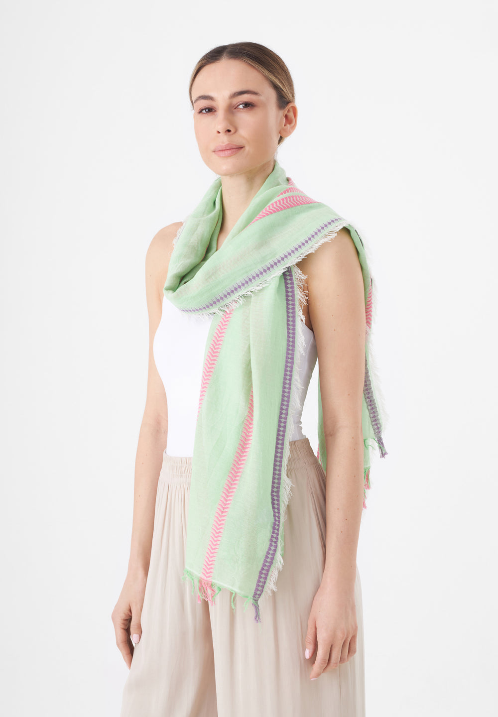 Leichter Schal aus reiner Baumwolle mit gewebten Streifen