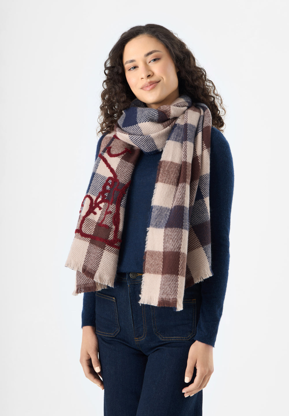 Klassisches Muster trifft auf ikonisches Detail: Dieser gewebte Peanuts™-Schal präsentiert ein zeitloses Karodesign in Blau und Beige, ergänzt durch eine fein gearbeitete Snoopy-Stickerei. Die winterlich warme Qualität sorgt für angenehmes Tragen – perfekt für entspannte Looks mit einem Hauch Persönlichkeit.